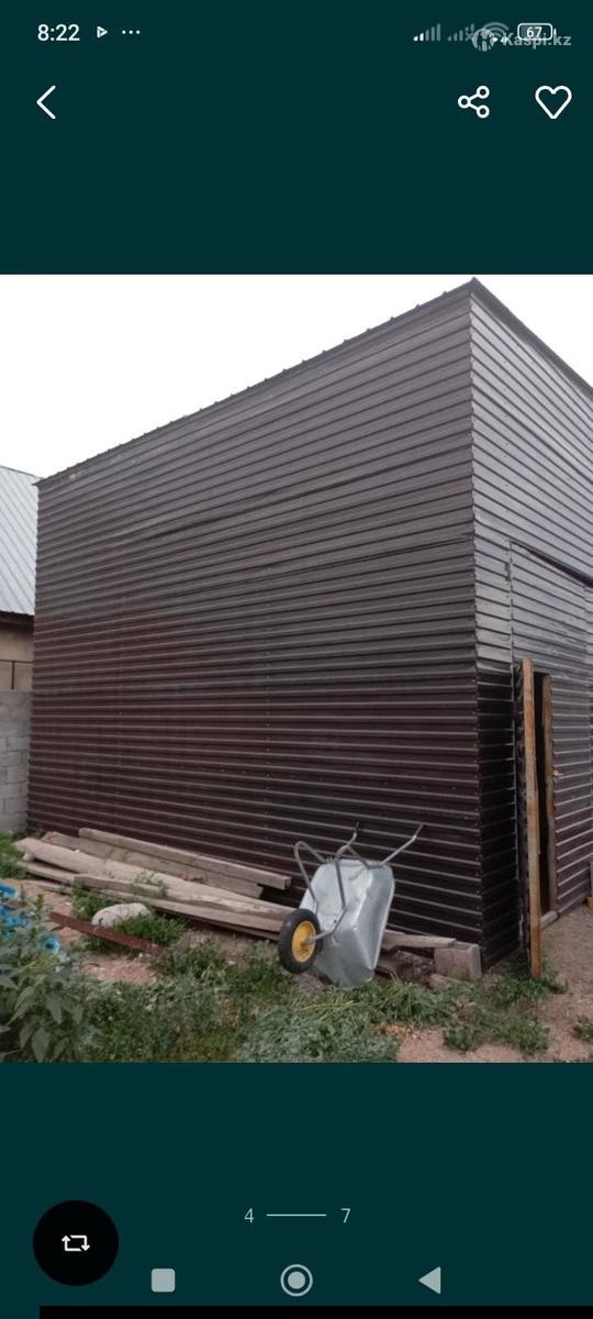 Продам большой гараж ( металлоконструкция. Размер длина 6 метров. Ширина 5 метров. Высота 4.5 метра. Подойдет для Сто и любых других объектов. Полностью отделан профлистом. Высокие ворота. Все вопросы по телефону. Самовывоз из шанырак2