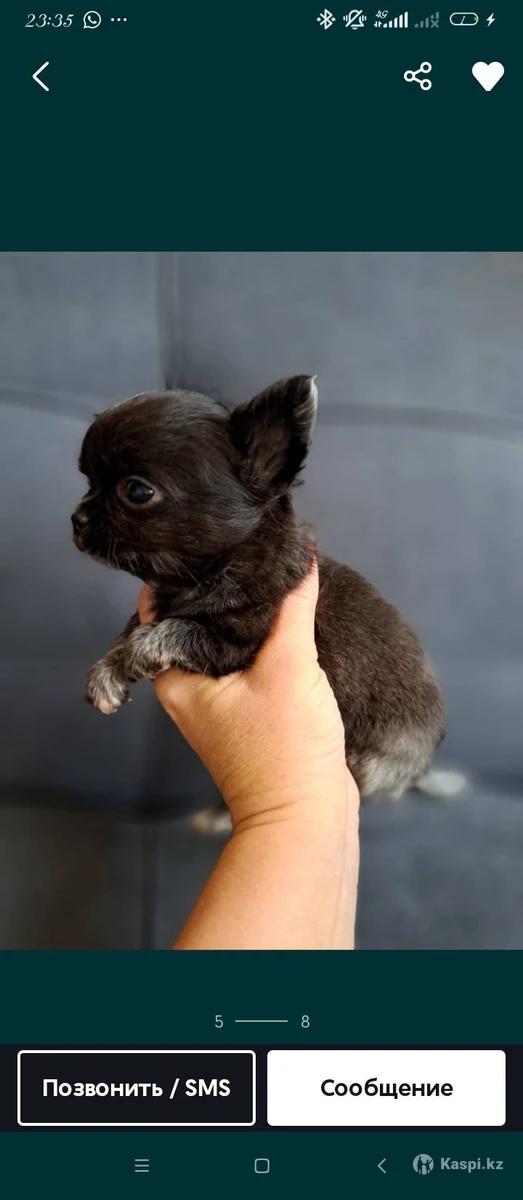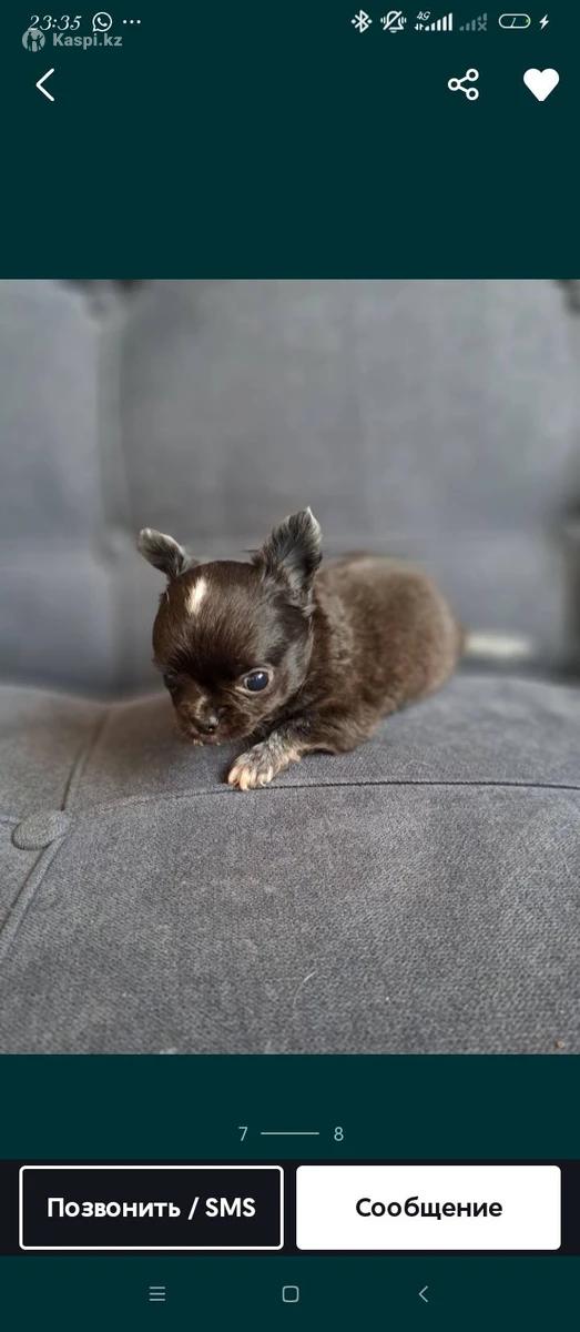 Продам мини Чихуахуа мальчик. Рождение 19.01.2026. С документами. Проглистогонены прививка по возрасту. Ветпаспорт имеется. Приучается к пеленке. Мать Киргизия. Головка яблоко, носик курносый беби фейс. Коротколапый, отлично сложен. В продаже есть щеночки других декоративных пород .Есть отправка в другие города Казахстана. Остальные вопросы по телефону, видеозвонок приветствуется.