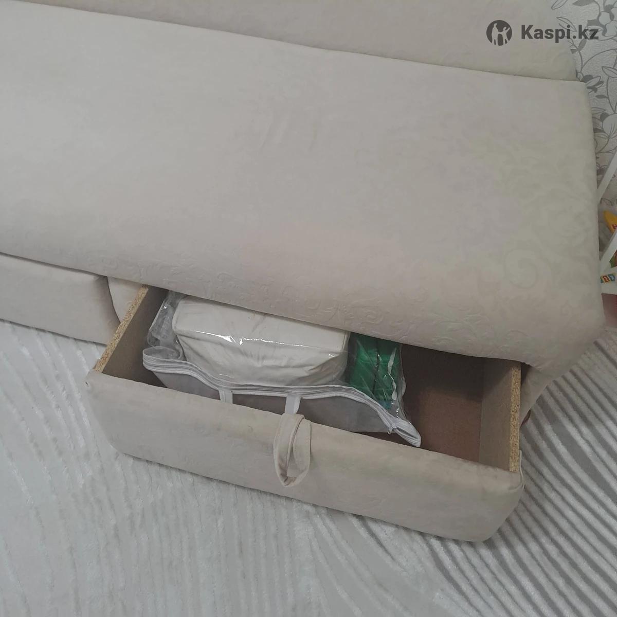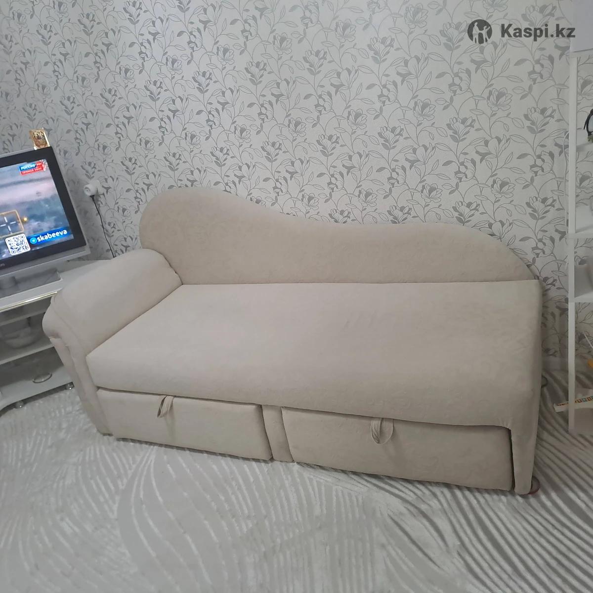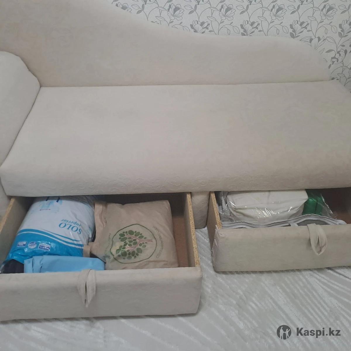 МиниДиван,не раскладывается, в идеальном состоянии, размеры:на одного человека. Обит очень мягким и нежным на ощупь материалом. Два выдвижных ящика, очень подойдет в прихожую, гостиную.