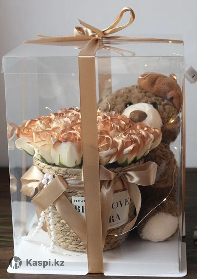 Продам мишка с цветами, с гирляндой светится идеальный подарок к 8 марта