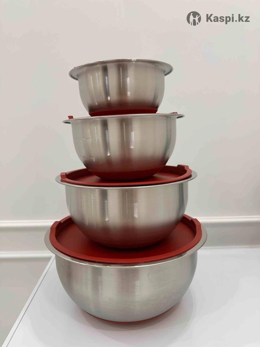 Продам новый набор из нержавеющей стали чашки /миски . Китай, но этот товар они экспортируют в США . Толстые , тяжелые , с крышками