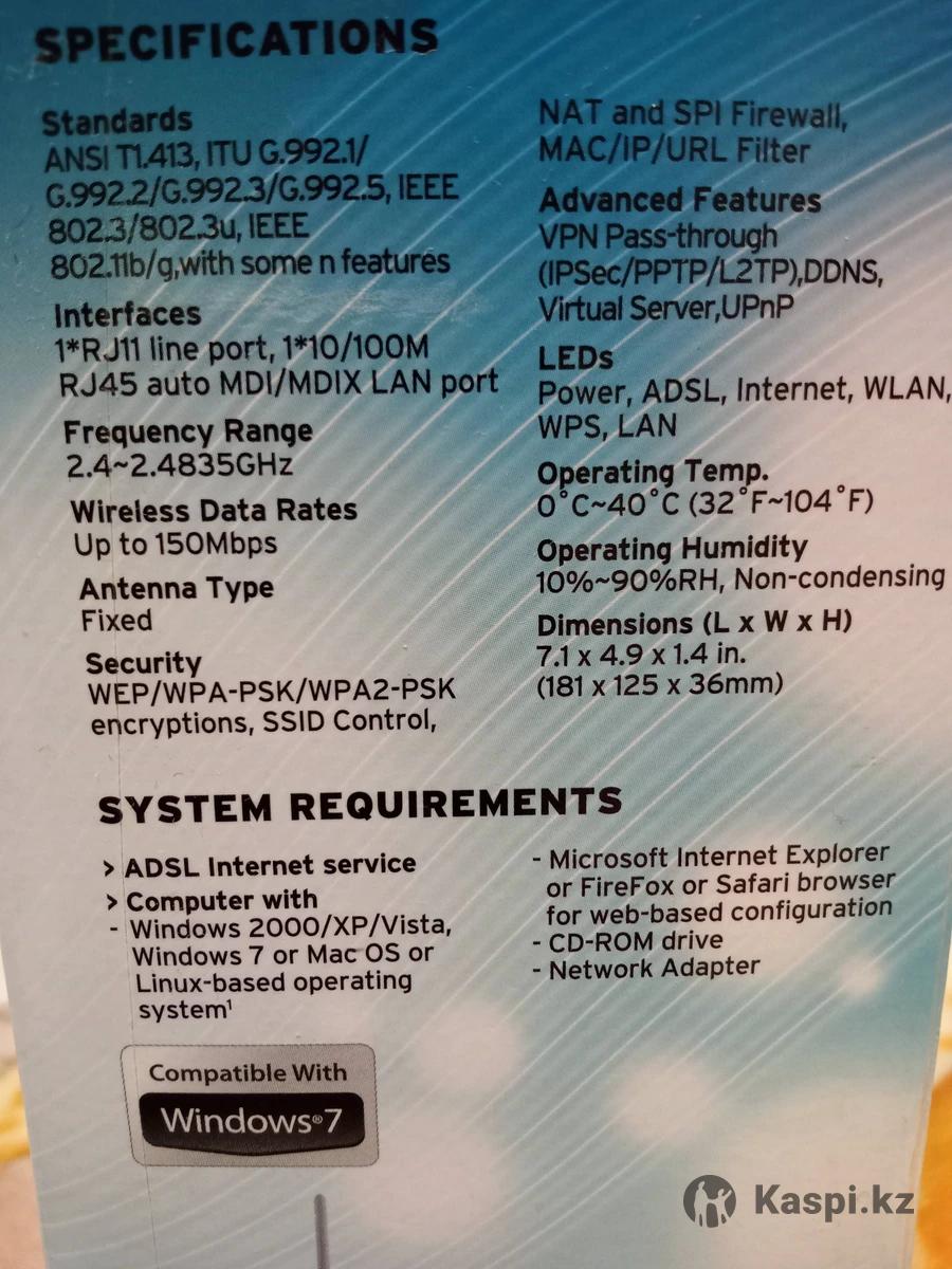 Модель TD-W8151N. В комплекте: W-LAN кабель, ADSL кабель, адаптер питания, инструкция.