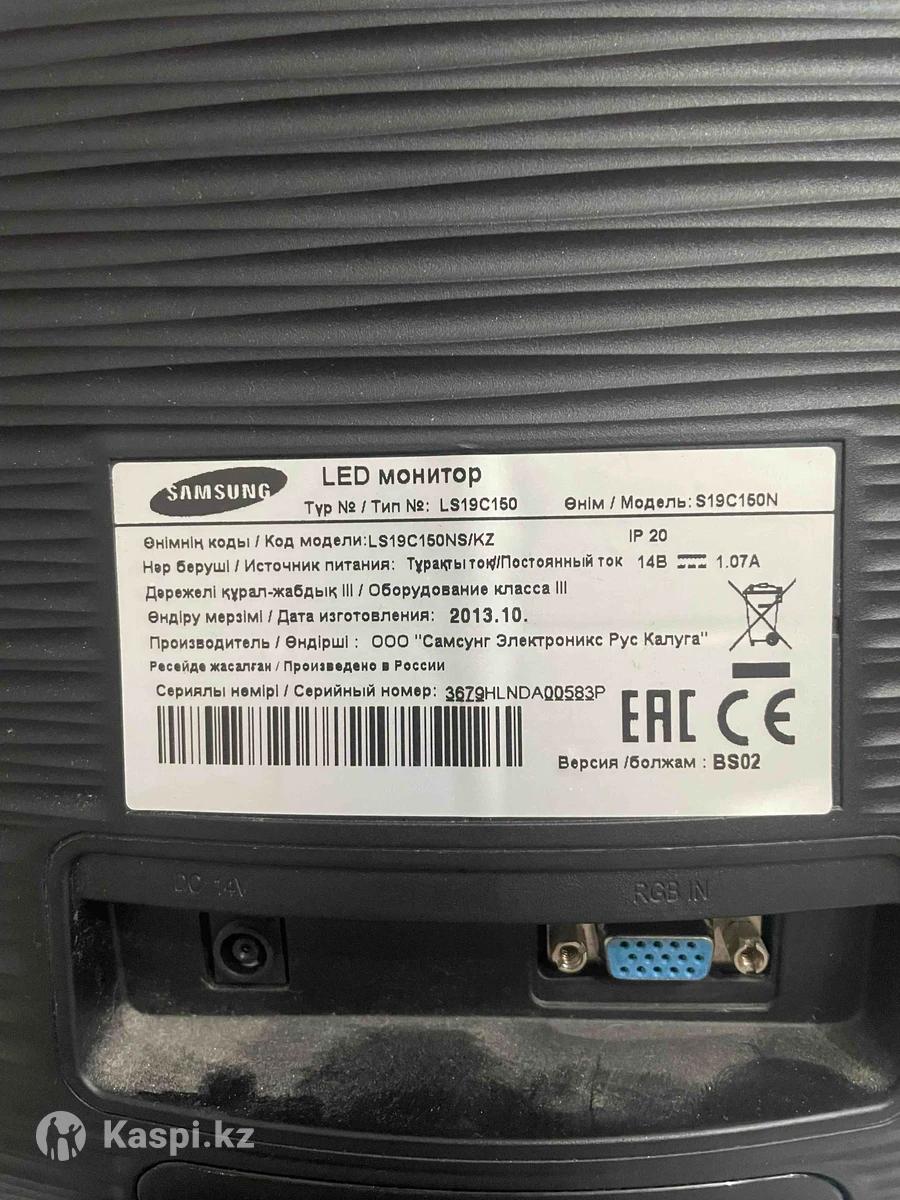 Монитор Samsung S19C150N, 1366x768, TN. диагональ (подробно): 18.50 ", тип матрицы экрана: TN, макс. разрешение: 1366x768, время отклика: 5 мс, соотношение сторон: 16:9, яркость: 200 кд/м2, интерфейсы видео: вход VGA