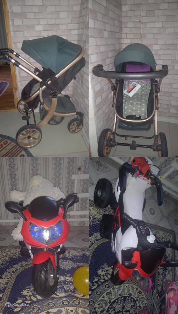 Жағдайы өте жақсы жүріп тұр, зарядкасы бар мотоциклдің, коляска жағдайы жақсы почти как новый көп қолданылмады, тек бір доңғалағына подчепник керек бірақ жүріп тұр.