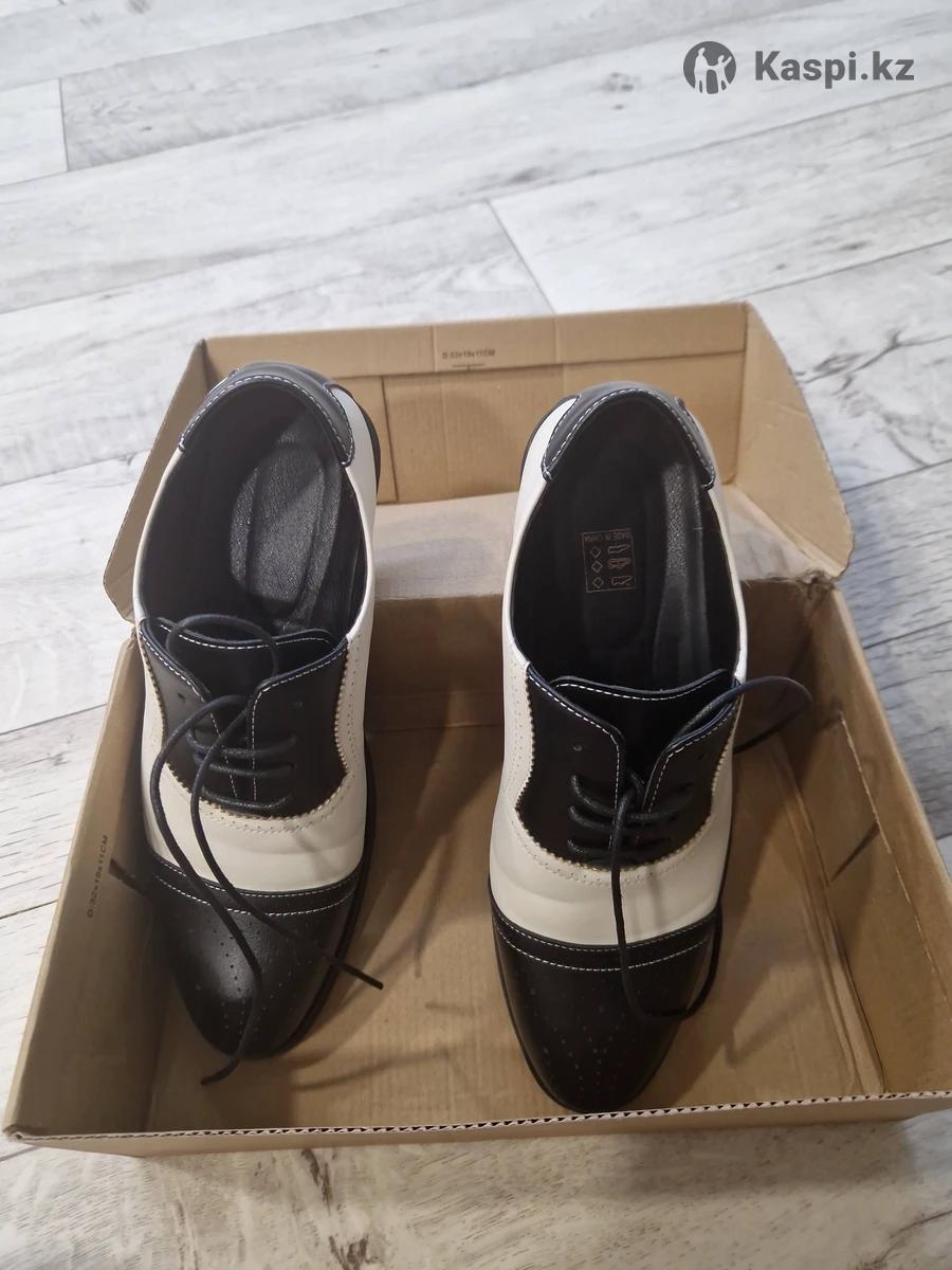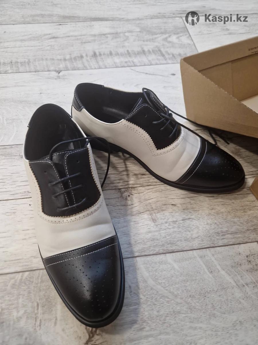 Мужские элегантные бело-черные оксфорды с брогом и крыльями. Материал синтетическая кожа из микрофибры. Продам только в Усть-Каменогорске Купили для костюма другу, а как приехали оказались больше чем думали. На улицу не одевались, только мерили дома один раз. Торг уместен