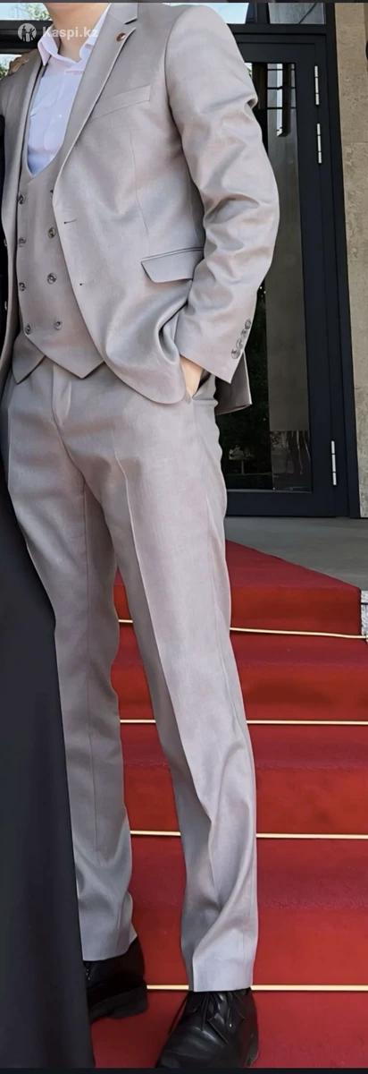 Элегантный мужской костюм размер M Продаю стильный классический костюм благородного светло-серого оттенка. Надевался всего один раз на мероприятие, состояние идеальное — без дефектов, потертостей Костюм состоит из пиджака, жилета и брюк. Можно примерить. Покупали за 85.000 тг, отдам за 20.000 тг