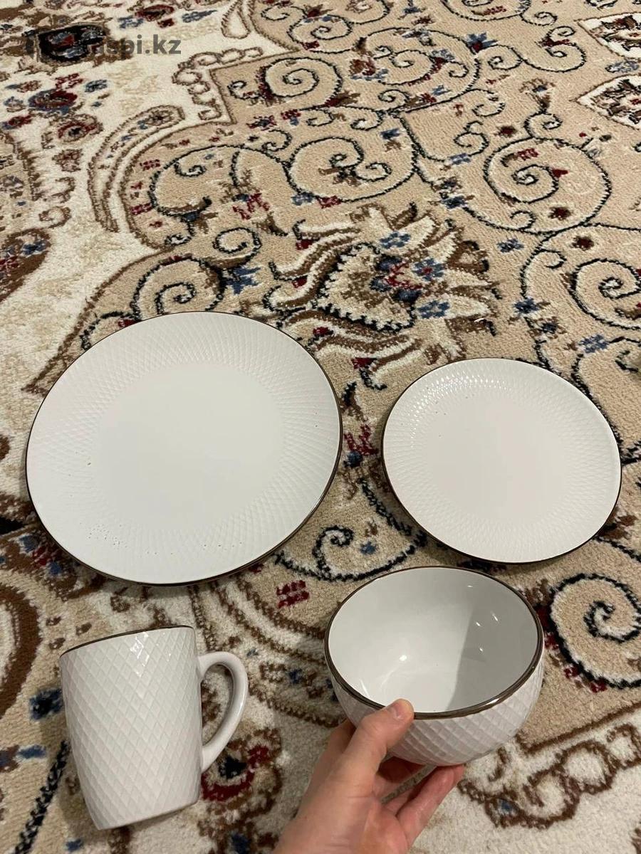 срочно продам набор посуды серый на 4персон 14предметов 4 больших тарелок 4 средний тарелок 3 кружки 3миска для супов цена 16тыс