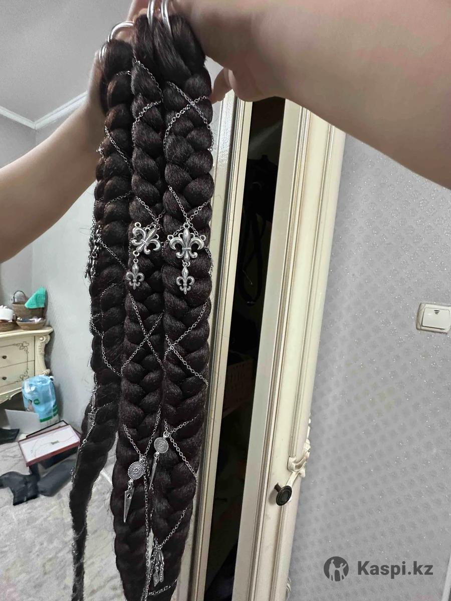 Цвет: темный (шоколадный/черный) Длина: длинные, ниже талии Материал: качественный канекалон Крепление: удобное, держится хорошо