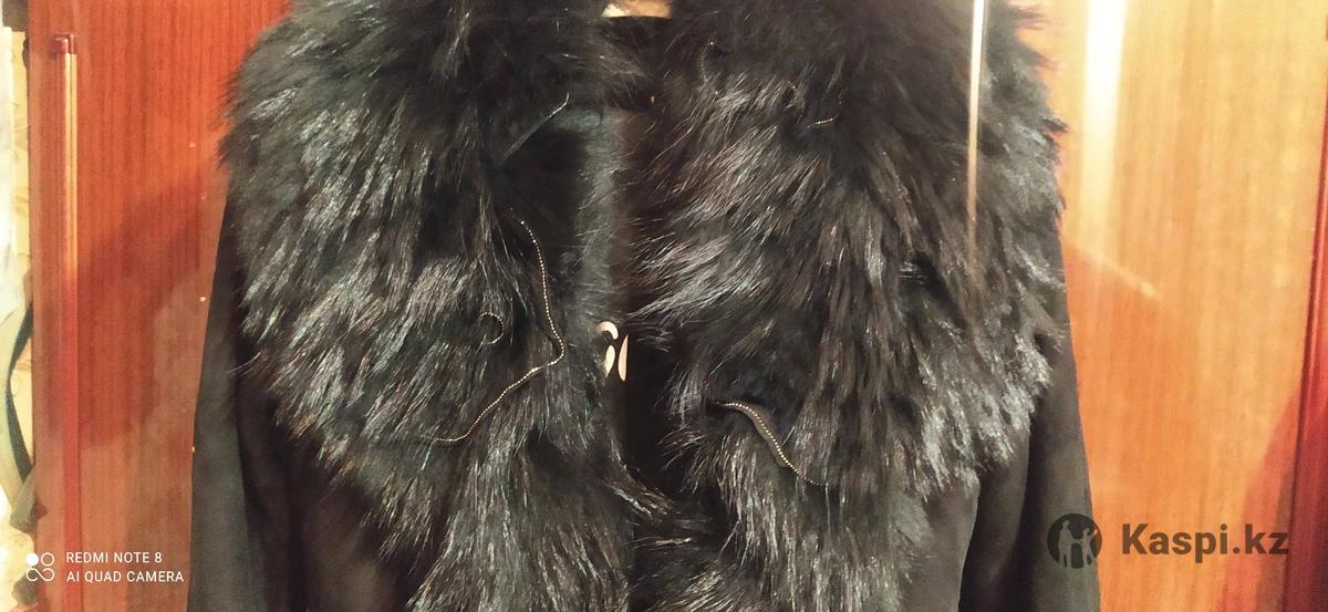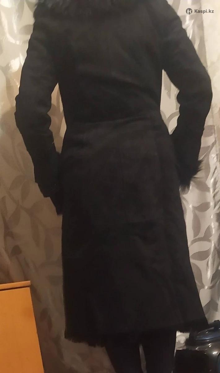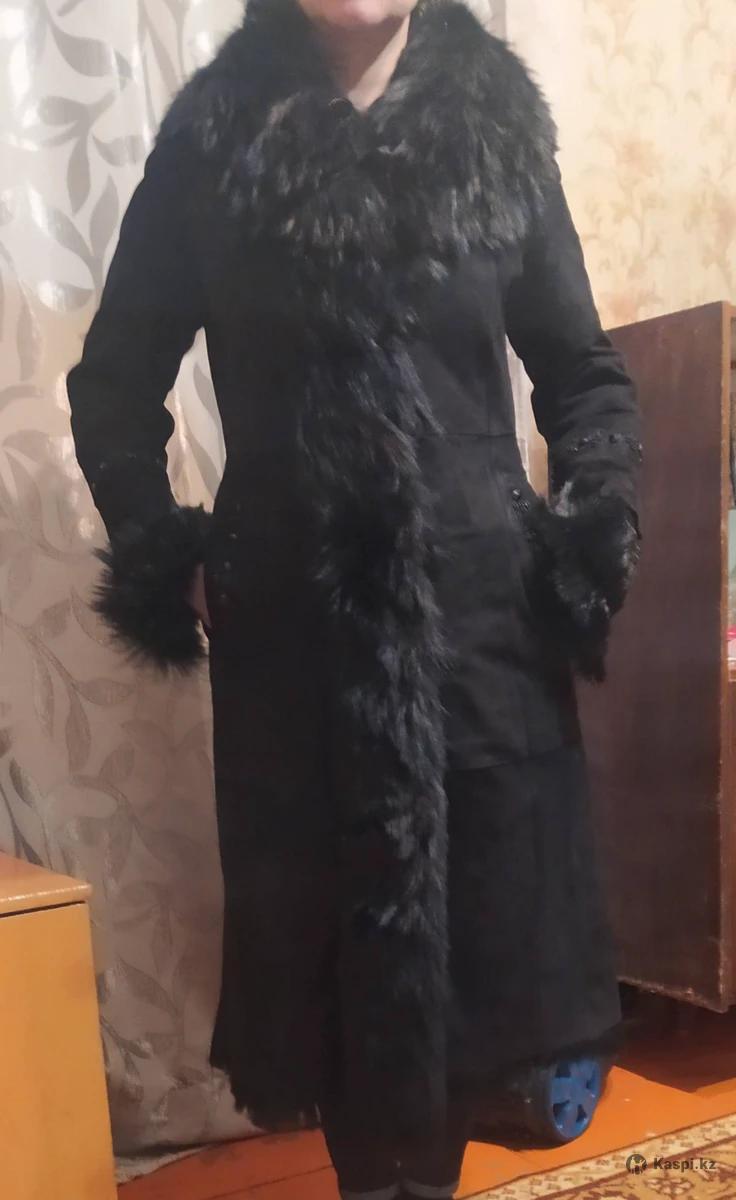 Дубленка женская, черная, длинная, 48р. В очень хорошем состоянии., с поясом.