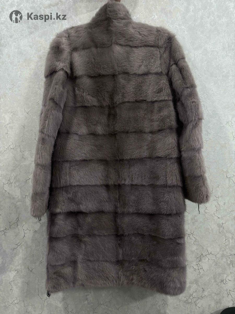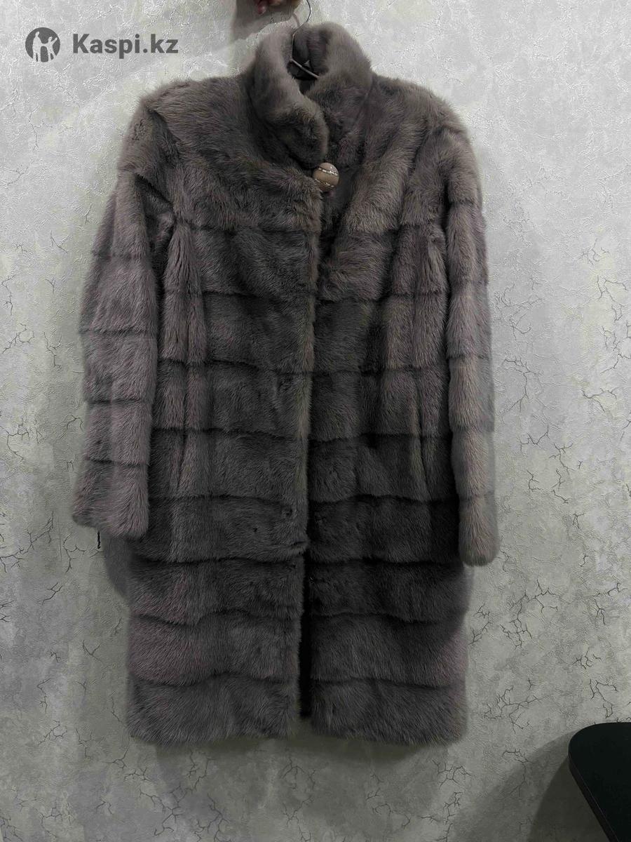 Шуба из норки, цвет графит. Размер: примерный 42-44 Длина – ниже колена, фасон прямой, трансформер очень теплая и легкая. Красивая воротник-стойка, застежка на крючки и одну декоративную пуговицу. Состояние отличное, носилась аккуратно 1 сезон , без дефектов.