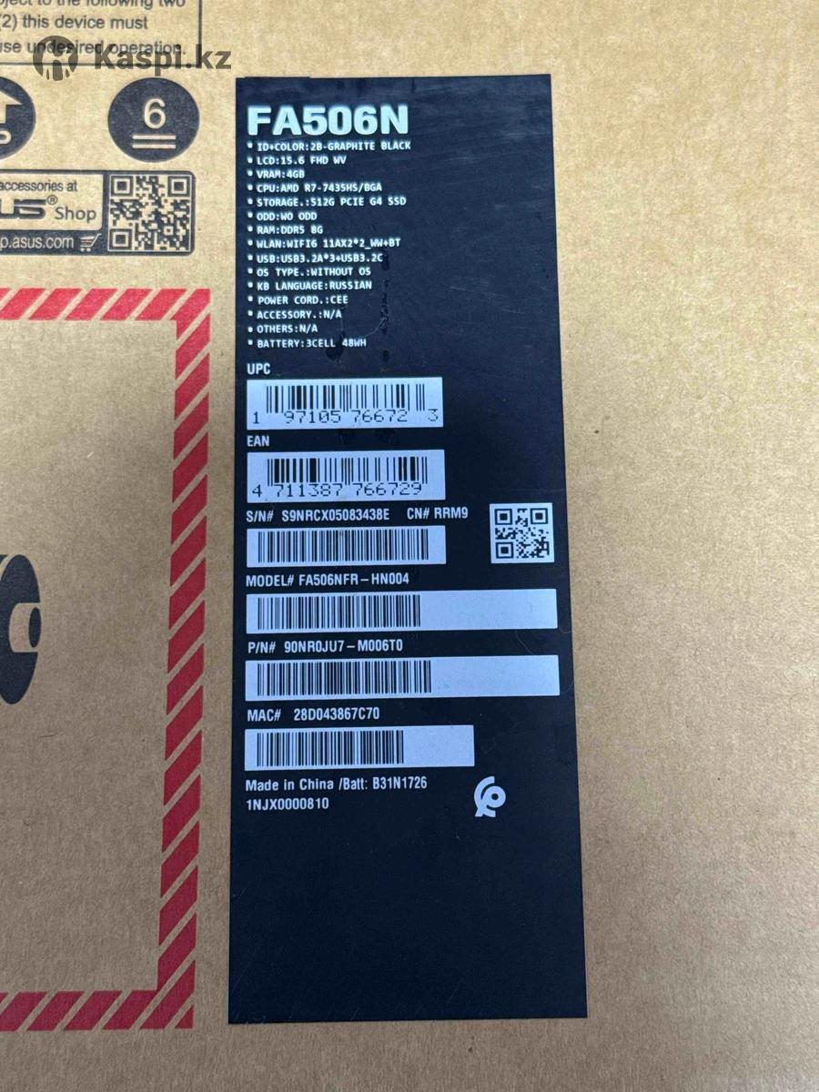 Продаю ноутбук ASUS TUF Gaming FA506N в идеальном состоянии. Использовался аккуратно, без игр на максимальных нагрузках, перегрева и ремонтов. Полностью рабочий, быстрый, подойдет для учебы, работы и игр. Характеристики: • Процессор: AMD Ryzen 7 7435HS • Видеокарта: NVIDIA GTX 1650, 4GB • Экран: 15.6" Full HD • RAM: 8GB DDR5 • SSD: 512GB PCle 4.0 • Wi-Fi 6, Bluetooth • Аккумулятор в отличном состоянии • Состояние: близко к новому, без царапин и потертостей • Полная комплектация (коробка, документы) Торг в пределах разумного