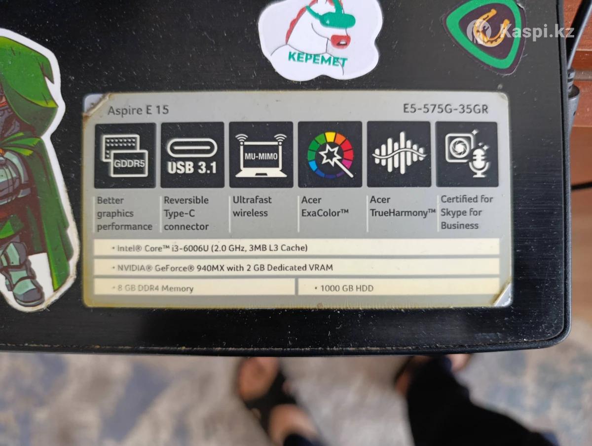 Продам ноутбук aser, в хорошем состоянии, характеристики Интел i3-6006u, оп 8гб, видео карта Nvidia geforse 940mx 2 gb, память 1tb