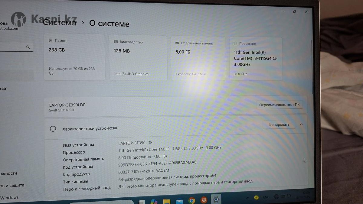 Продам ноутбук шустрый не зависает, покупала для написания диплома. Windows 11. Память 238гб, видеоадаптер 128мб, оперативная память 8гб