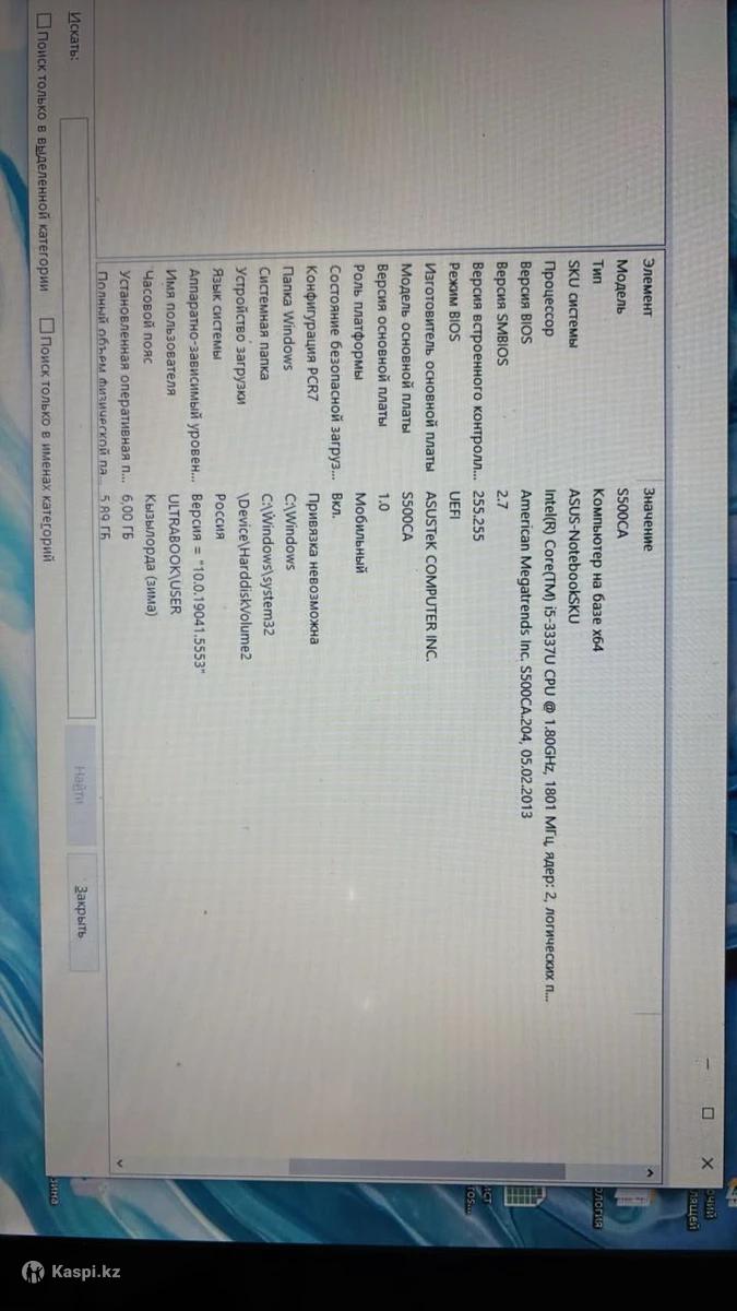 Марка: ASUS Модель: S500CA Имя системы: ULTRABOOK Сенсорный экран Батарея не долго держит