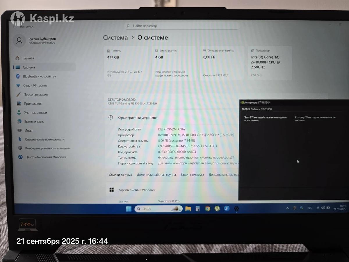 Продам ноутбук ASUS TUF GAMING в отличном техническом состоянии. Эксплуатировался немного, сейчас лежит без дела. Имеется дефект на топкейсе, на работу никак не влияет. По желанию, топкейс можно поменять. Клавиши не потертые, не затертые. В остальном по корпусу никаких царапин нет, в идеале. Ни разу не вскрывался. Характеристики: - Дисплей: 15.6 дюйм (FHD 1920×1080 144Гц) - Процессор: Intel Core i5 10300H CPU - Видеокарта: GeForce GTX 1650 - Оперативная память: 8 ГБ - Накопитель: SSD 512 ГБ - Windows 11 pro В комплекте оригинальная мышь ASUS. Коробка, документы имеются. Рассмотрю обмен на ультрабук, с доплатой в мою сторону. Торг уместен.
