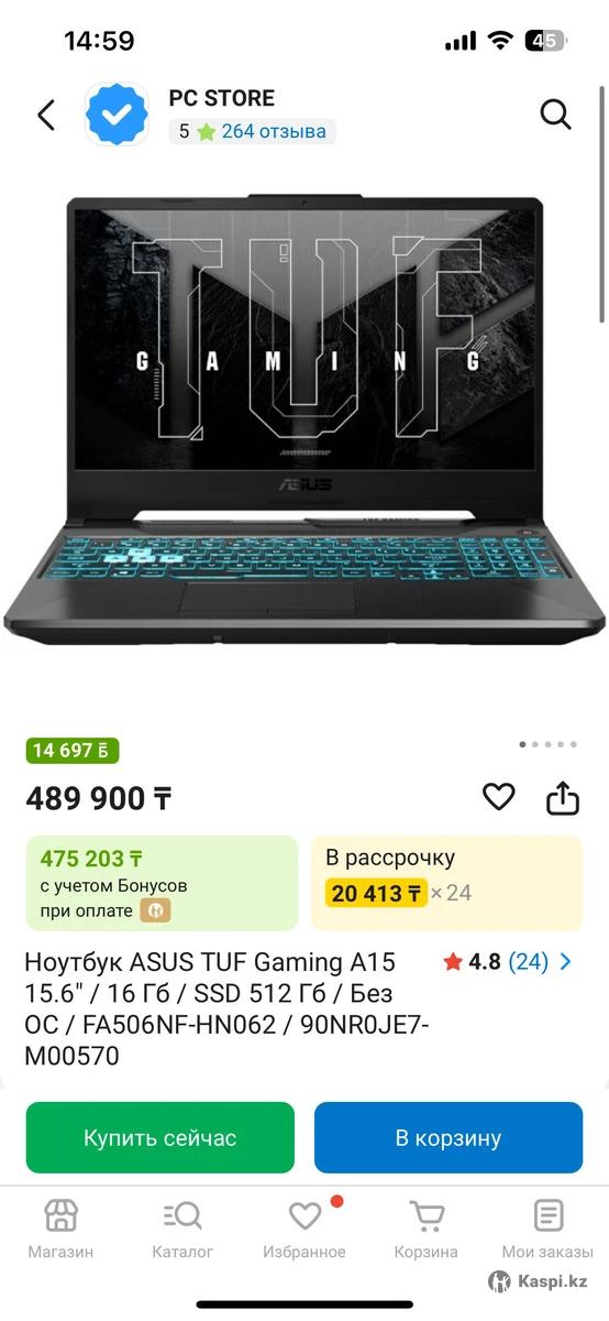 ASUS TUF Gaming A15 - мощный игровой ноутбук , который обеспечит высокую производительность в самых требовательных играх и приложениях. - Процессор AMD Ryzen 5, 7535HS - для плавной работы в любых задачах. - Дискретная видеокарта GeForce RTX 2050 с 4 Г6 видеопамяти - отличный выбор для современных игр. - 16 Гб оперативной памяти - гарантирует быструю загрузку и многозадачность. - SSD накопитель на 512 Гб - для мгновенного запуска системы и игр. - Экран 15.6" с частотой обновления 144 Гц - для четкого и плавного изображения. Ноутбук идеально подойдет для геймеров, стримеров и тех, кто работает в сфере дизайна, где требуются тяжелые графические программы, такие как 3ds Max, Adobe Illustrator, Photoshop, CorelDRAW и т.д. Полный комплект: коробка, документы, оригинальная зарядка, а также мышка и сумка входят в комплект. В идеальном состоянии, так как пользовалась им нечасто. Покупала год назад. Требуется переустановка Windows.