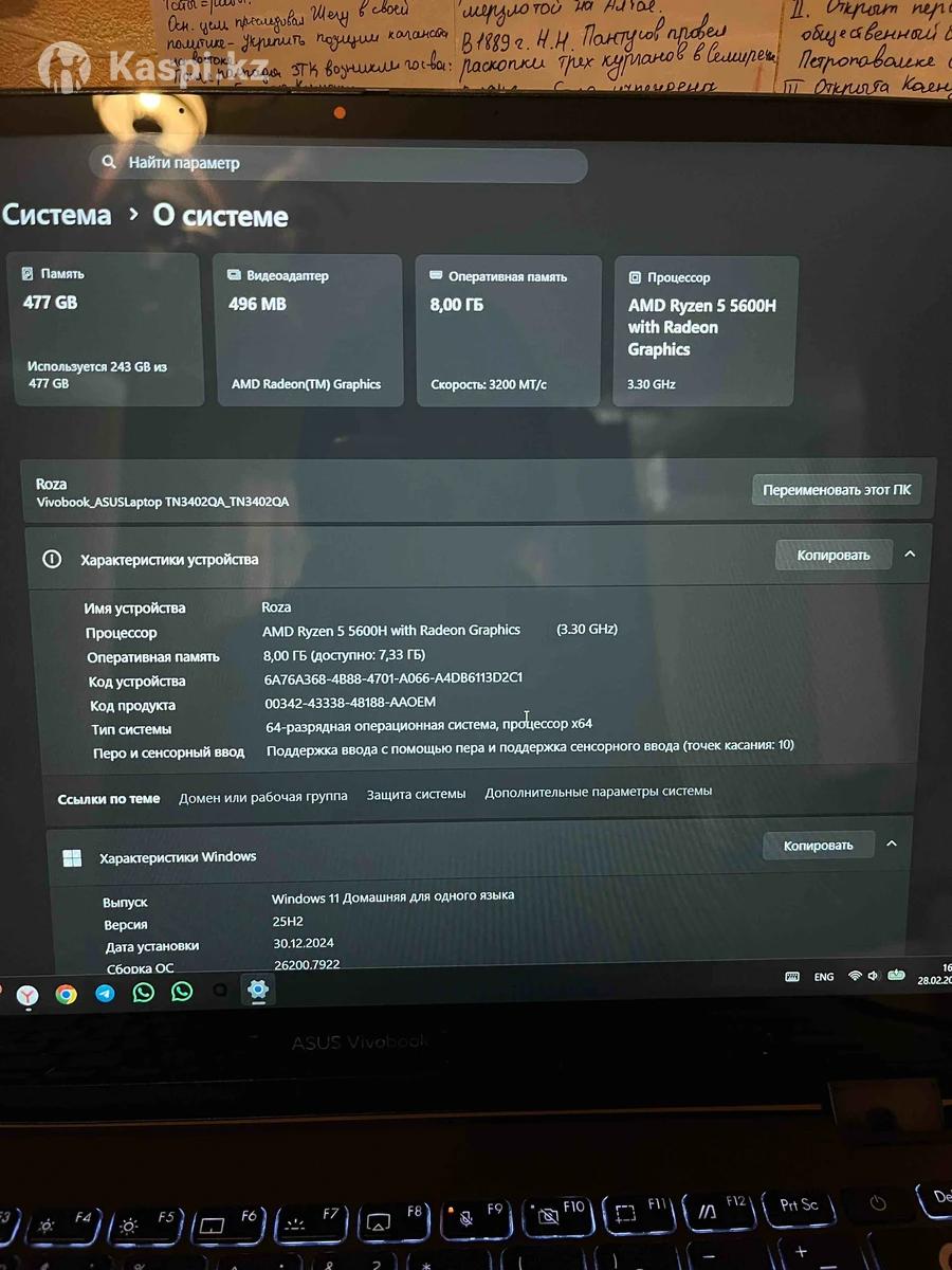 Характеритики на фото. Ноутбук на 8 гб оперативной памяти и 512 гб. Покупали три года назад, в хорошем состоянии. Коробка от ноутбука не сохранилась. Есть оригинальное зарядное устройство. Есть небольшой торг