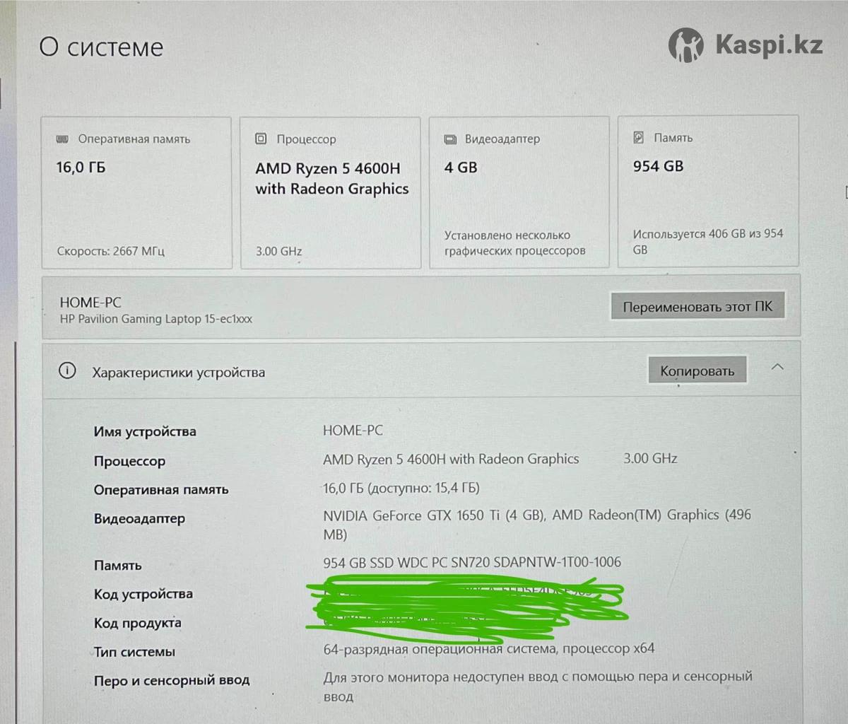 💻 HP Pavilion Gaming Laptop 15 AMD Ryzen 5 4600H (3.00 GHz) 16 GB RAM SSD 1 TB NVIDIA GeForce GTX 1650 Ti (4 GB) Отличное состояние, все работает стабильно. Windows 10, можете обновить до 11.