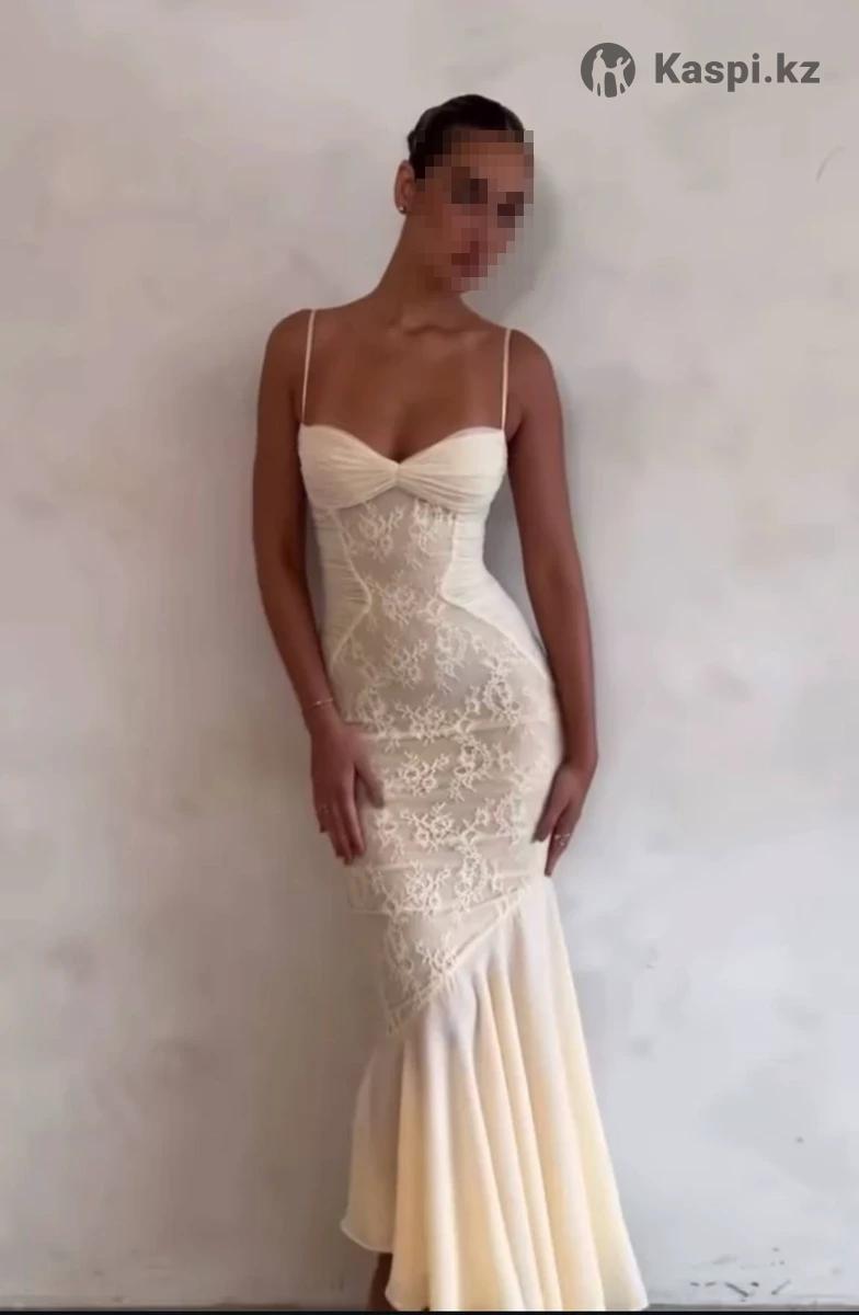 Красивое макси платье ванильного цвета. Размер S (42), подойдет худеньким и высоким девушкам (примерно от 165см). Платье из шифона с кружевной вставкой. Одевалось только один раз во время примерки дома, так что платье абсолютно новое. Прошу не звонить, а писать