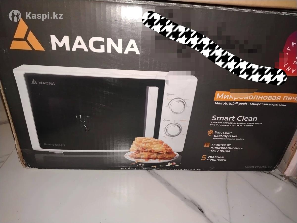 Новая микроволновая печь Характеристики Бренд: Magna Модель: M20B7001-W (белый цвет) Тип управления: Механический, с поворотными переключателями Внутренний объем: 20 литров Мощность микроволн: 700 Вт Уровни мощности: 5 уровней Внутреннее покрытие: Эмаль Диаметр поддона: 240 мм Размеры (ШxВxГ): 446 x 243 x 353 мм Особенности: Функция быстрой разморозки, таймер до 30 минут со звуковым сигналом, защита от микроволнового излучения