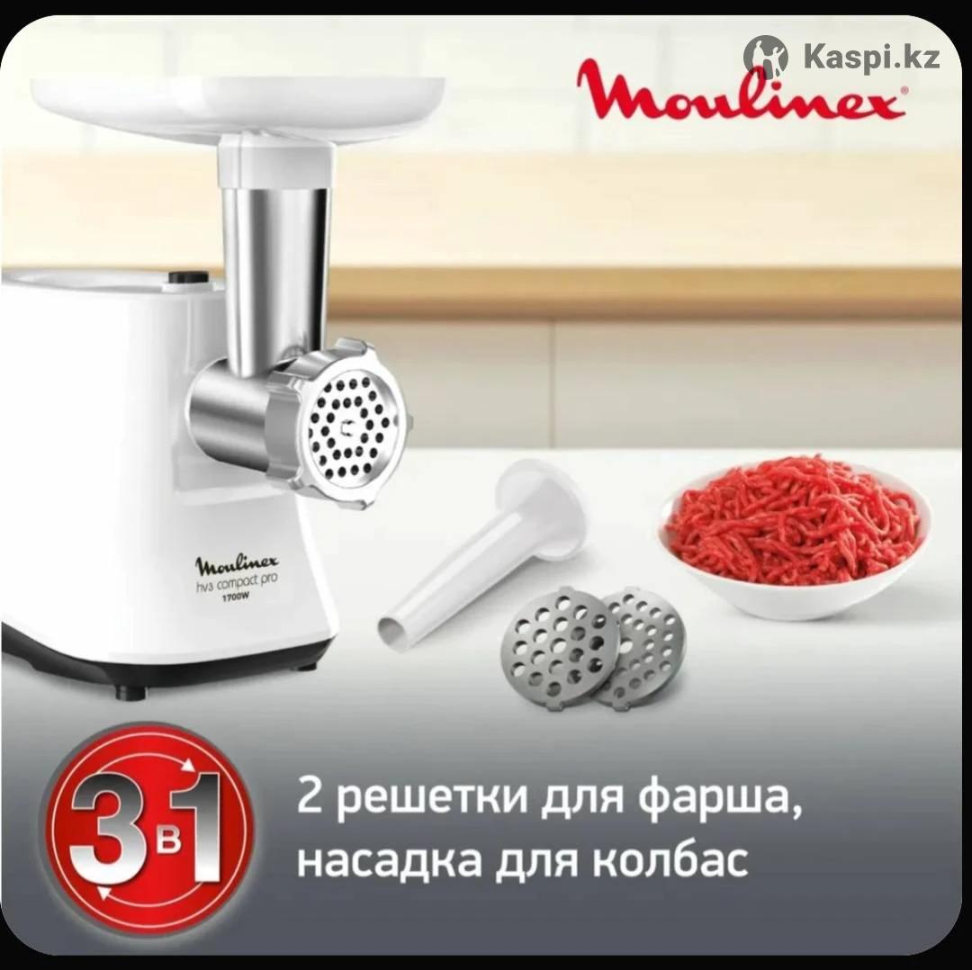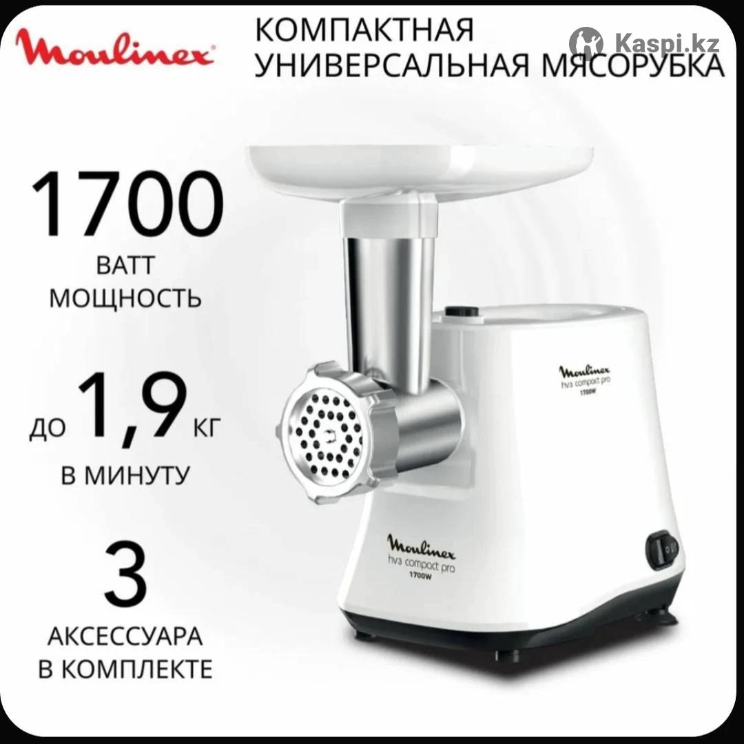 Продам новую Мясорубку Moulinex HV3 Compact Pro белый. Самовывоз с мкрн Айнабулак 2 Мощность составляет около 1600-1700 Вт (максимальная) и до 500 Вт (номинальная), производительность – до \(1,9\) кг/мин. Для удобства предусмотрена функция реверса, предотвращающая застревание мяса.