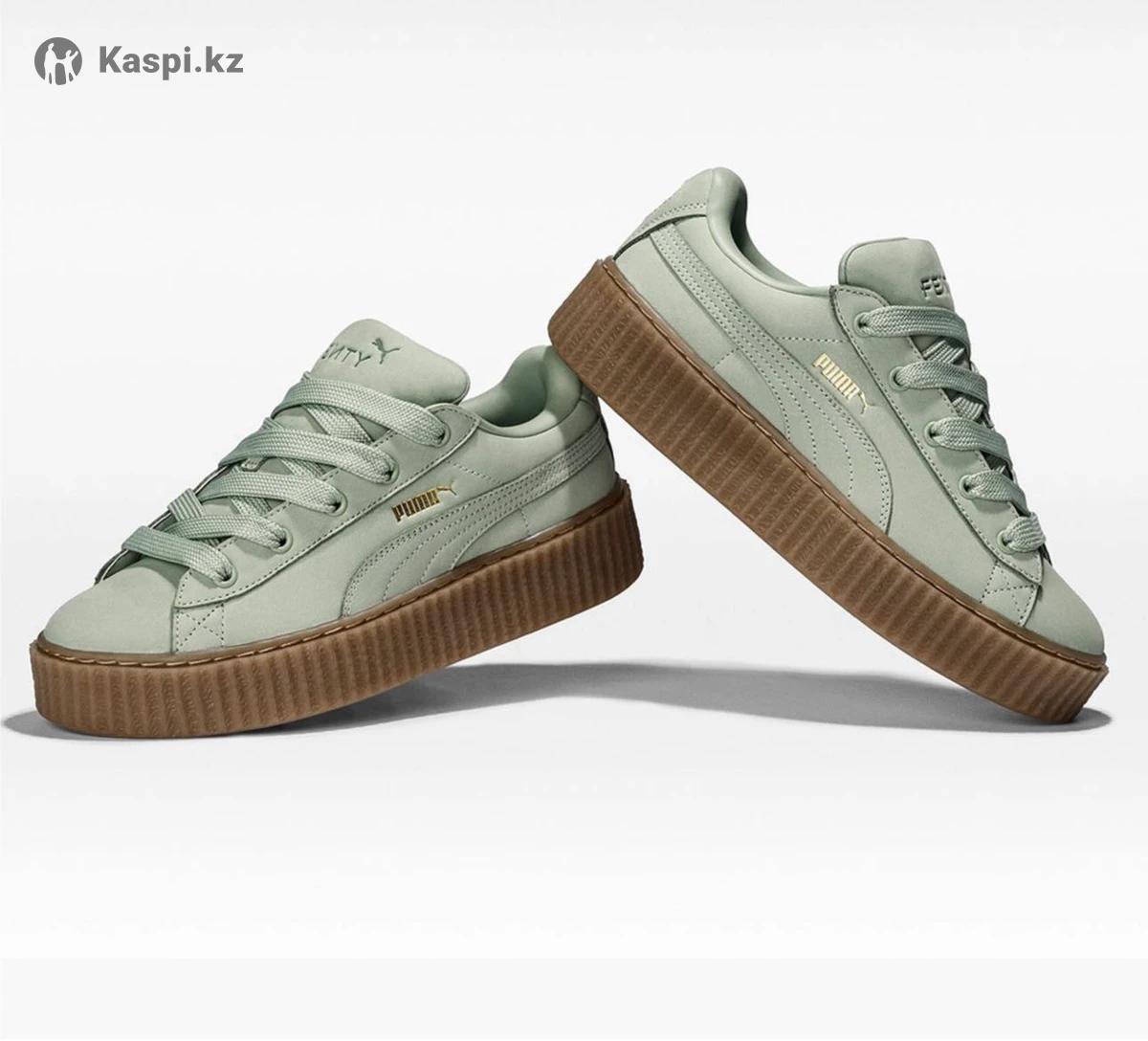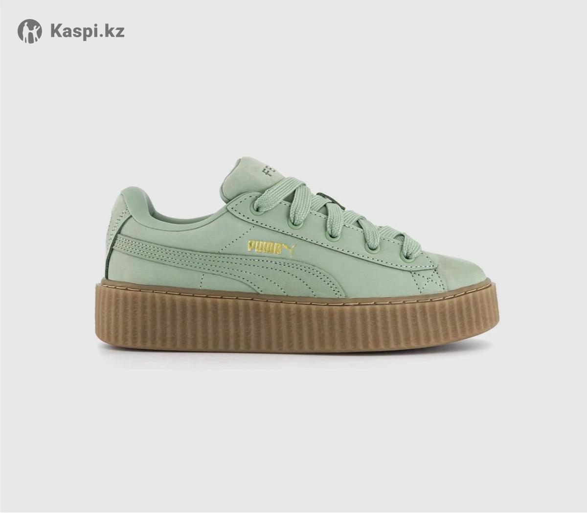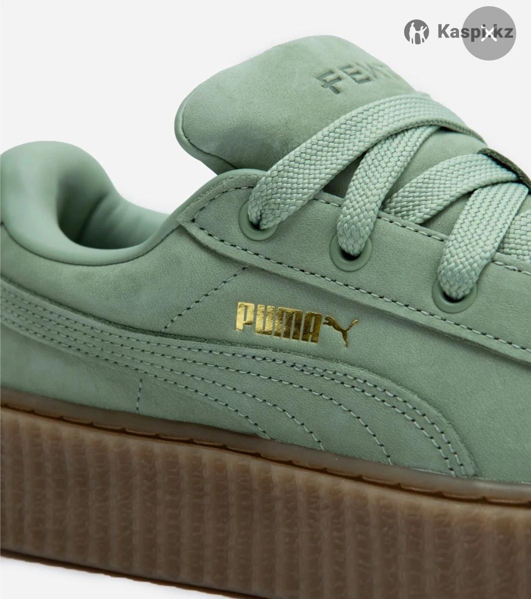 Новые Кроссовки Puma Fenty by Rihanna женские 38 размер, цвет: светло зеленый. Заказывала онлайн, не подошли по размеру. Покупала за 155$ В наборе дополнительные шнурки и брендированный бархатная сумка для хранения обуви. Бренд: Puma X Fenty ( коллекция коллаборация с Рианной ) Торг уместен