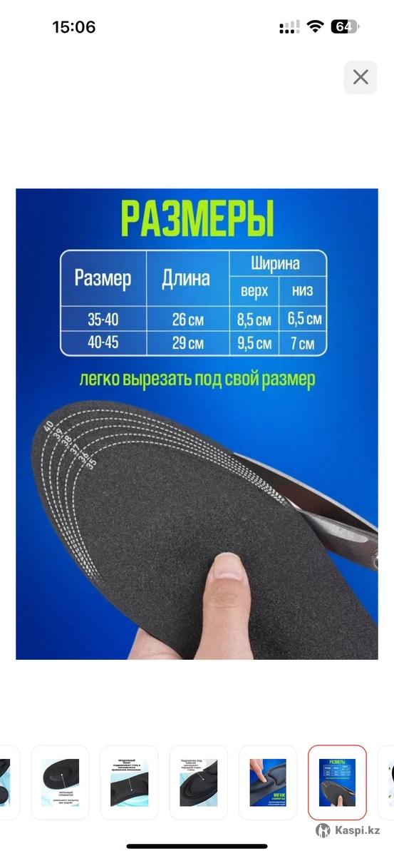 Продам новые анатомические стельки от 100 штук, цена за штуку 100 тенге, размеры 40-45.