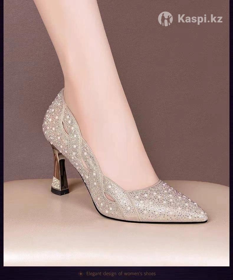 Продам новые туфли, на удобном каблуке, цвет золотистый со стразами
