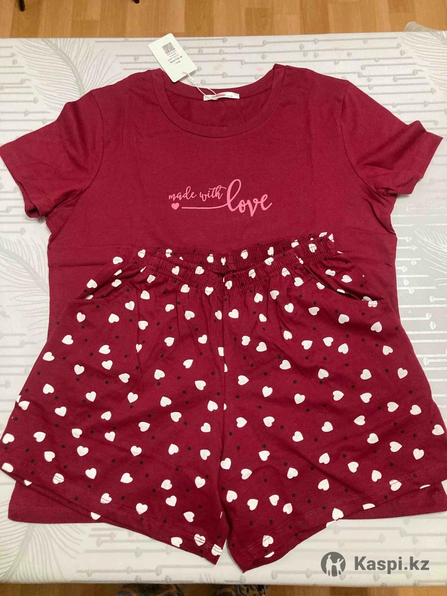 Продам вещи халат размеры 48,50,54.Халат остался бежевого цвета. Футболка шорты 48,50,54 и домашняя одежда кофта и штаны 52,54,58,60. Все новое в упаковке, все по 4000 тг