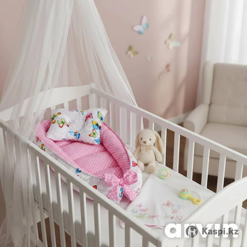 Новый кокон гнездышко и ортопедическая подушка для малышки. 70см на 30см. Спальное место.