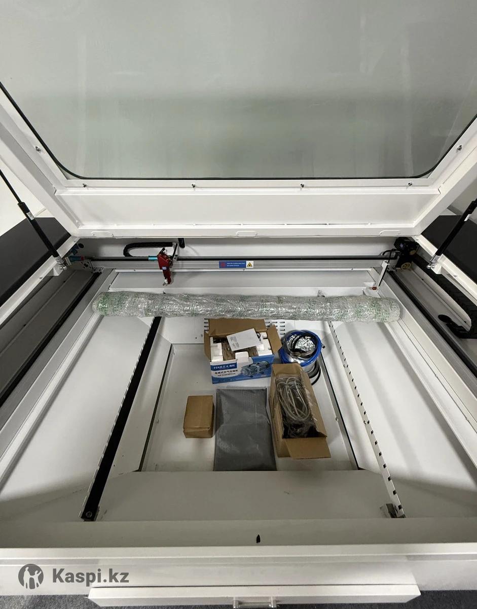 В комплекте абсолютно все необходимое для работы: Размер рабочего поля 130х90см Лазерная трубка 130 Вт (новая) Чиллер Компрессор Программное обеспечение, кабели Идеально подходит для: — Резки и гравировки фанеры, дерева, акрила, пластика, кожи, МДФ и других материалов — Производства наружной и интерьерной рекламы — Сувенирной и подарочной продукции Быстрая окупаемость — от 3 до 5 месяцев при стабильной загрузке. Станок абсолютно новый. Работает отлично, можно приехать и проверить. Звоните или пишите — отвечу на все вопросы. Можно в рассрочку через KASPI BANK