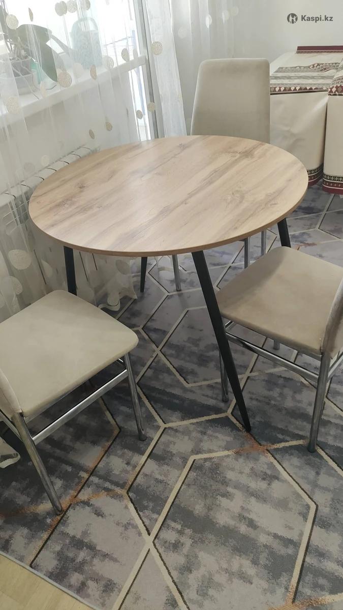 Продам новый круглый стол, размер 909075 см, столешница из ЛДСП, ножки металл, красивый качественный стол. На днях заказала из каспи магазина, не подошёл по размеру, отдам за 20.000тг, на каспи его цена 23.000