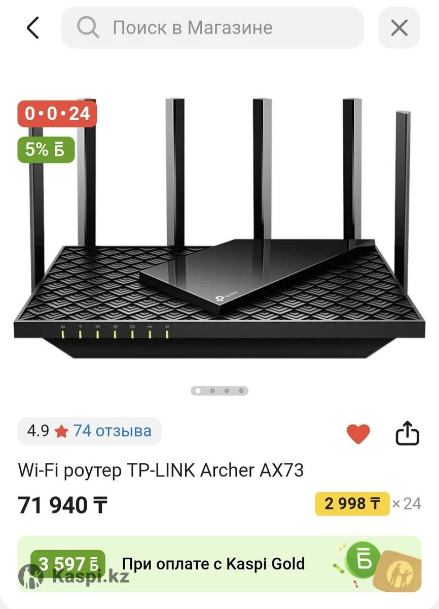 Здравствуйте. Продам новый не использованный вайфай Archer AX73. Купил месяц назад. Только упаковку открыл и решил продать. Взял себе другую. И в каспи оно стоит 71 940 тг, я продам его за 65 000 тг.