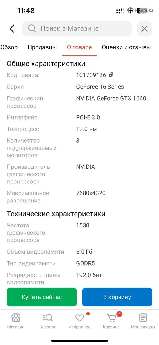 Нахожусь в Теренколь(Качиры). Без проблем привезу в город. Продам видеокарту Palit GTX 1660 Super (2 вентилятора) Видеокарта куплена в июле, использовалась аккуратно только для игр, без майнинга. Состояние отличное, работает стабильно, температуры в норме, не шумит. Любые проверки, без проблем. Не вскрывалась Причина продажи: апгрейд Тянет CS2, Dota 2, GTA V, Fortnite, Warzone — отличный вариант для игровой сборки. торг уместен