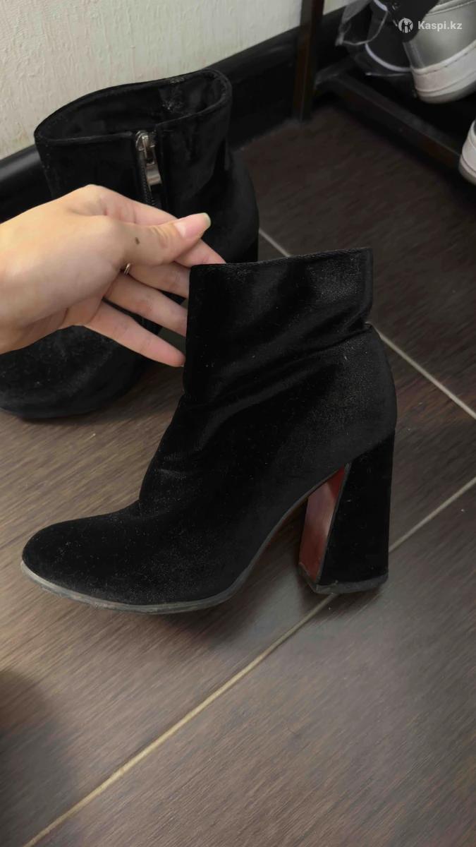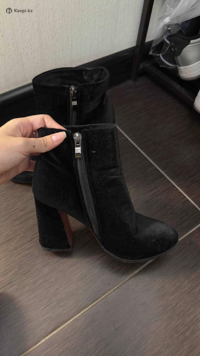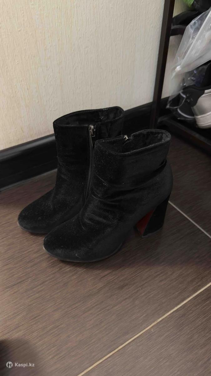 Продам осенние полусапожки на каблуке. Бархатная ткань. Каблук квадратный, очень устойчивый. Где то 9-10см. В целом обувь очень удобная. Носила только на выход, обувь не пахнет. Сейчас просто не ношу каблуки, просто так лежит