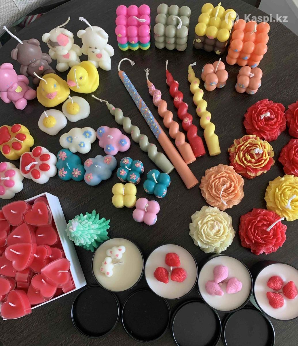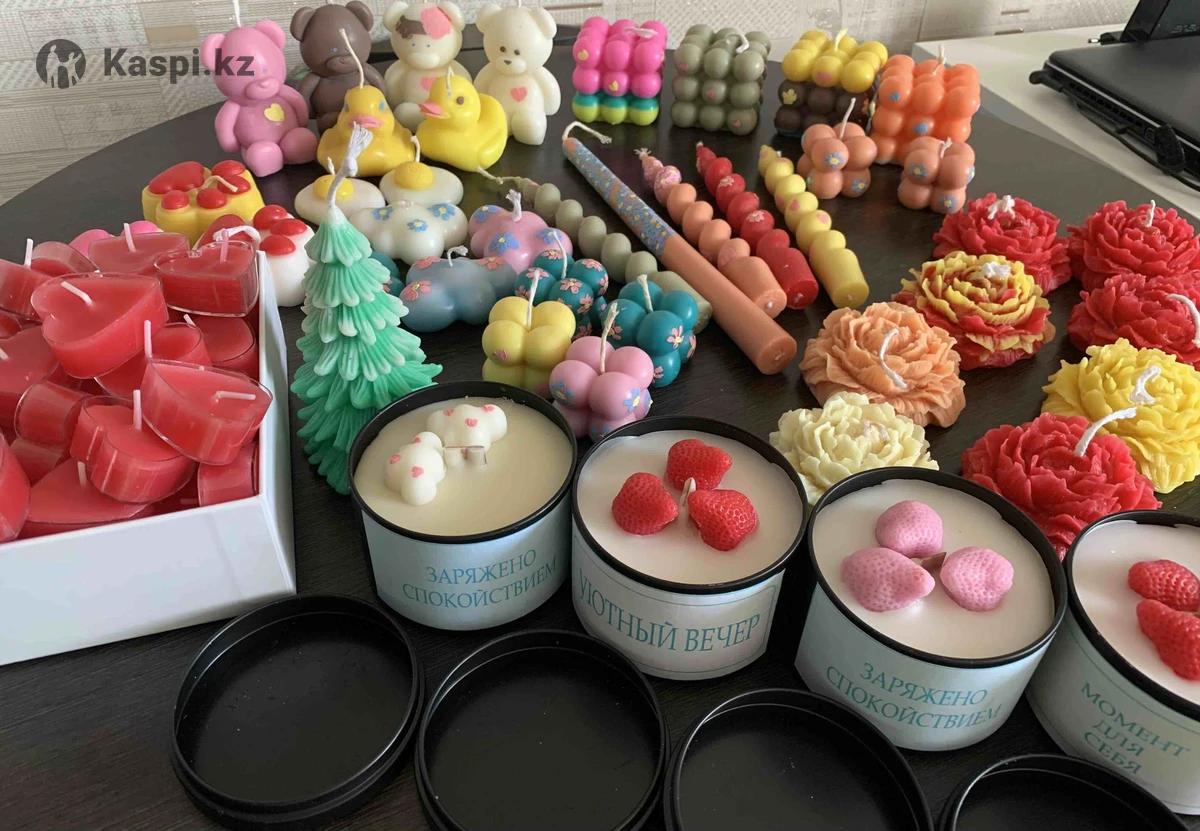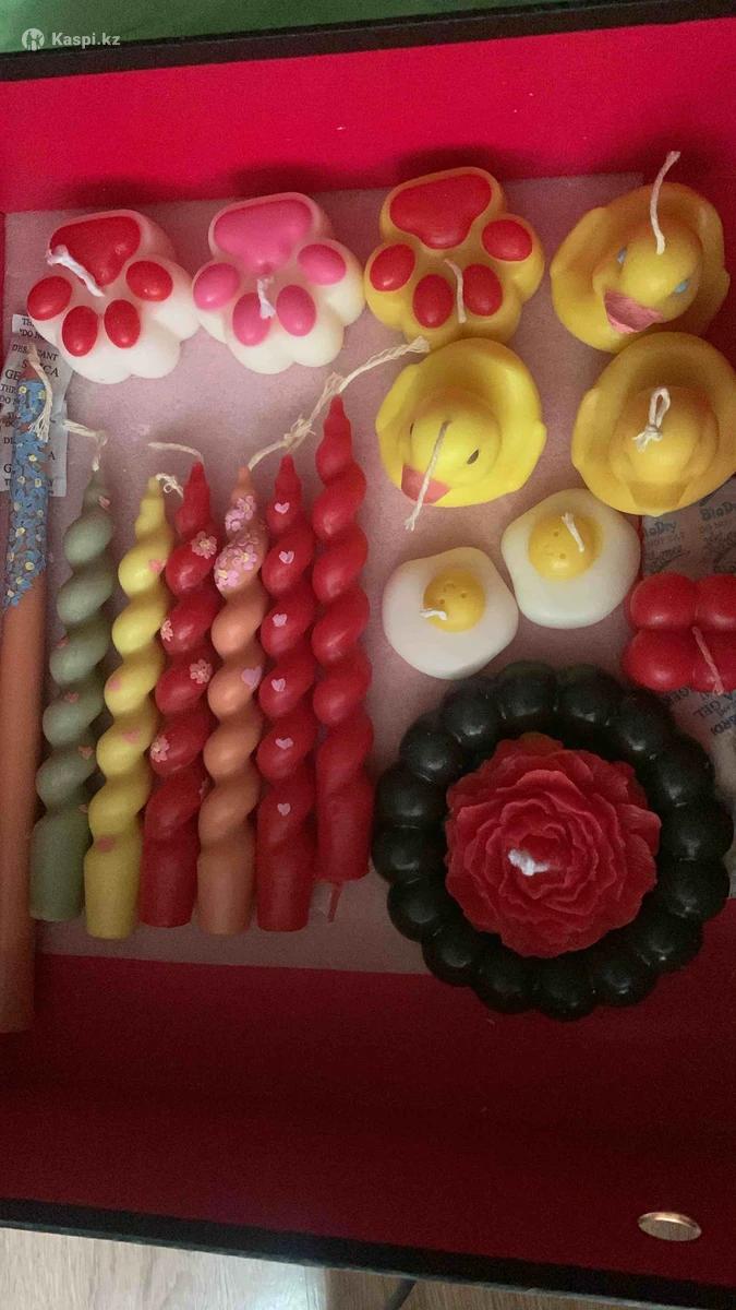 Продам свечи ручной работы из воска.Ароматы:пион/роза,лаванда,мандарин.Фитиль х/б;в баночках древесный фитиль (при горении дают легкое потрескивание и аромат)Цены:медвежонок,пион,куб большой,спиральки-400 тг;утенок,маленький куб,лапка,облачка-300 тг;сердечки-200тг(10 штук?;в баночке с крышкой-1000 тг.Видеообзор при желании в личку на ..Доставка есть