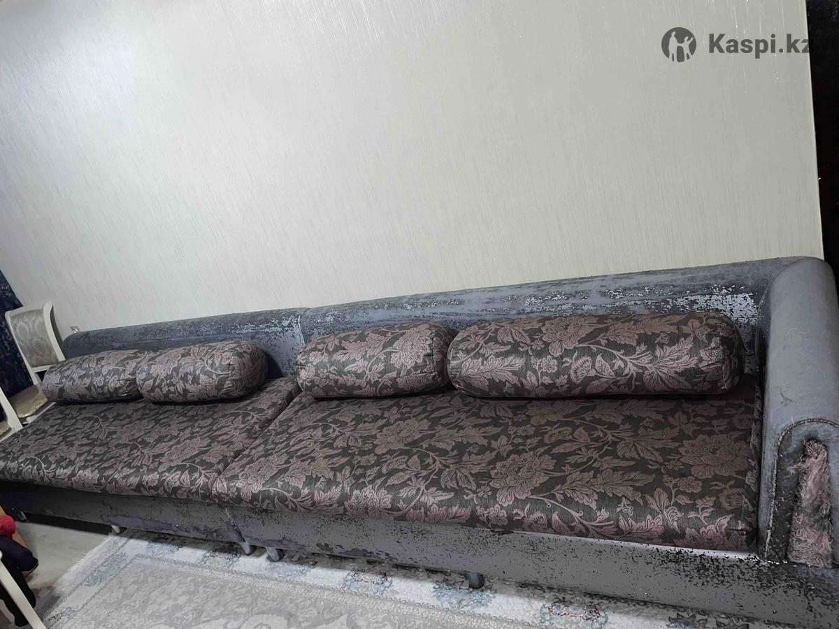 Удобный, мягкий и большой диван — длина 3,9 м, ширина 90 см, высота 75 см. Очень комфортный, можно спать, сидеть, использовать как гостевой. Не раскладывается (не трансформер). Есть небольшие потертости на спинке и снизу, но если накрыть пледом или дивандеком — все выглядит аккуратно. Состояние хорошее, конструкция крепкая.