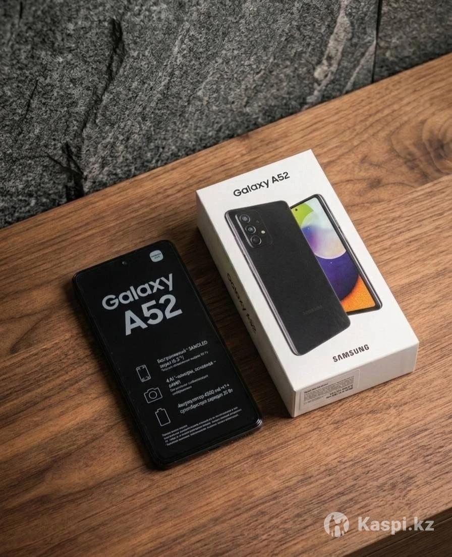 Galaxy A52: идеальный смартфон на каждый день. Состояние телефона хорошее. В комплекте коробка, телефон, чехлы для телефона. Обзор смартфона Samsung Galaxy A52 Технические характеристики Galaxy A52 • Диагональ экрана: 6.5" • Дисплей: Super AMOLED, 1080 х 2400, 90 Гц, яркость 800 нит, Corning Gorilla Glass 5 • Операционная система: Android 11.0 • Процессор: Qualcomm Snapdragon 720G, 8 ядер • Память: 4 ГБ/8 ГБ RAM (ОЗУ), 128/256 ГБ ПЗУ, поддержка карт памяти microSD до 1 ТБ • Камеры: -64 МП (f/1.8) -5 МП (f/2.4, датчик глубины резкости) -12 МП (f/2.2, широкоугольная) -5 МП (f/2.4, макро) -32 МП (f/2.2, форнтальная) -светодиодная вспышка, запись видео 4К, стабилизация видео • Беспроводные интерфейсы: Wi-Fi, Bluetooth 5.0, NFC • Сеть: 2G/3G/4G, Две SIM-карты, nanoSIM (не комбинированный слот) • Навигация: GPS/ГЛОНАСС/Beidou/Galileo • Разъемы: USB Type C (USB 2.0), OTG • Аккумулятор: Li-Ion 4500 мАч, время работы в режиме разговора – до 35 часов, воспроизведение видео – до 23 часов, время работы в LTE – до 20 часов • Степень защиты: IP67 (выдерживает пребывание в пресной воде на глубине до 1 метра до 30 минут) Вес: 189 грамм • Материал корпуса: Glastic (усиленный пластик)