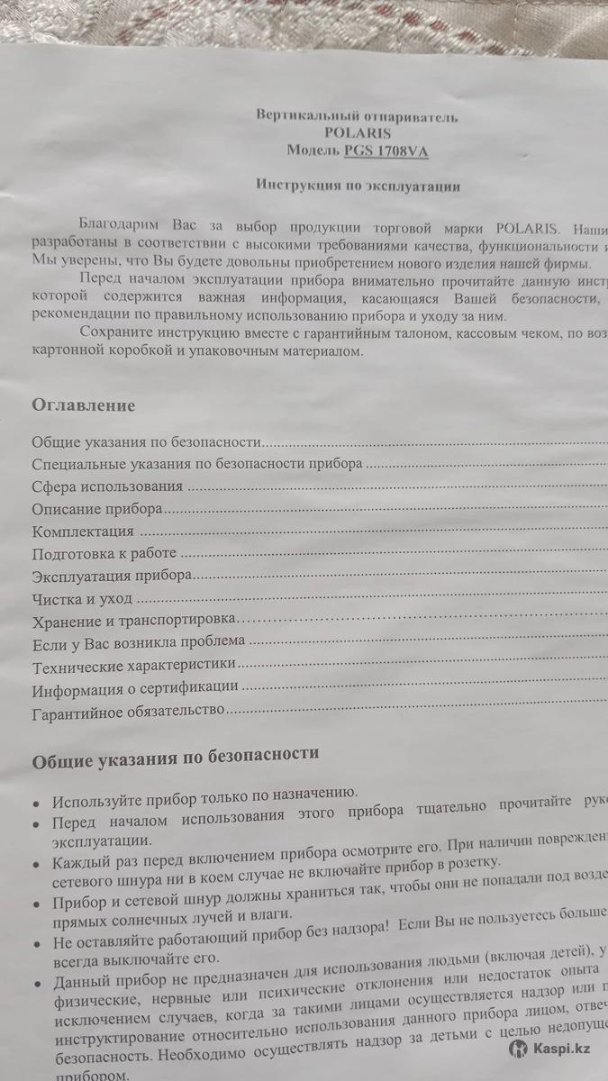 Продам вертикальный отпариватель утюг для одежды в отличном состоянии модель PGS1708VA. Цена 13 000 тенге.