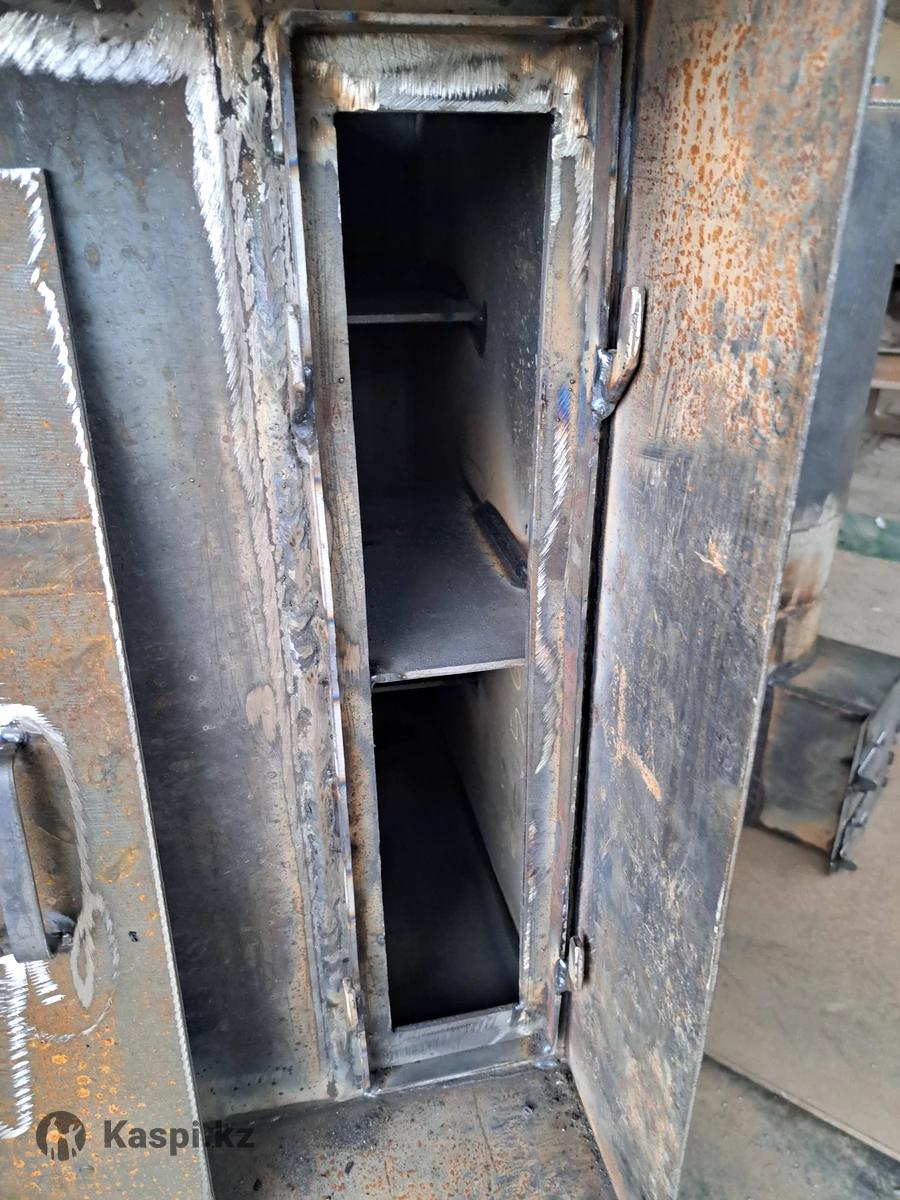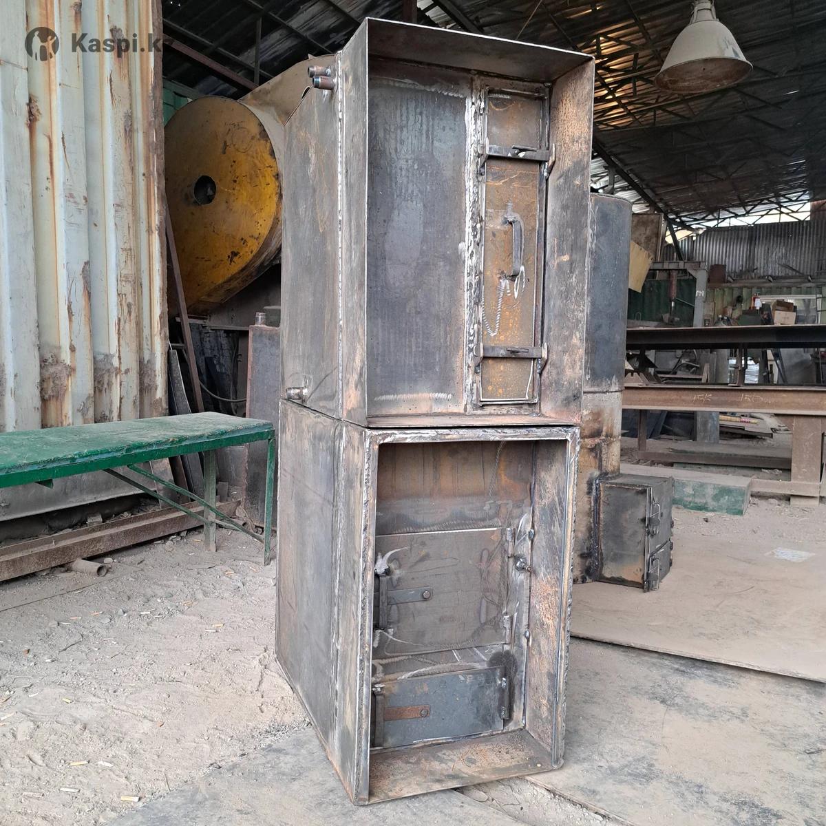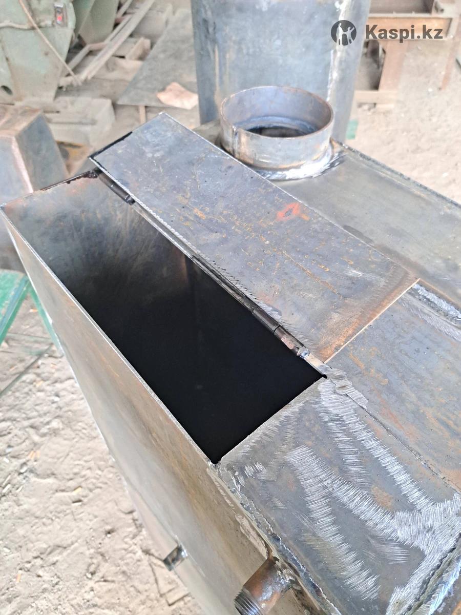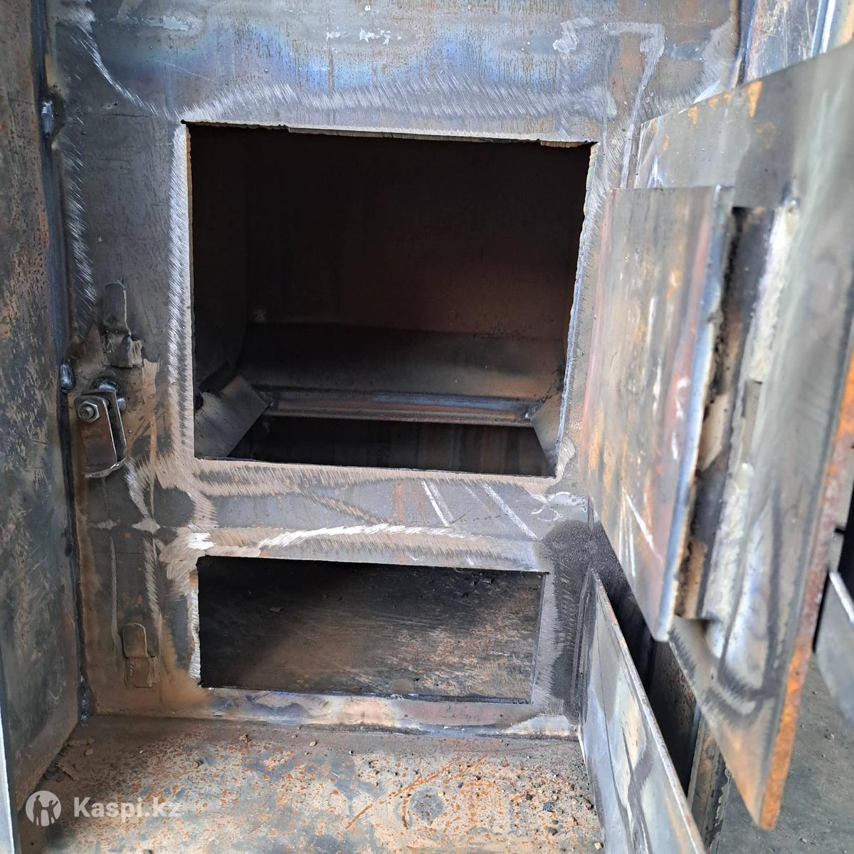 Печь банная Печь 6 мм Каменка 8 Объём бака 95 л Цена 193 000 Печь банная с баком на 95 литров, предназначена для использования в банях, для обогрева трёх помещений, кочегарки, моечной комнаты и парилки. Печь состоит из 2 частей, нижняя - сама печь, верхняя - дожигатель с баком. Печь изготовлена по периметру из листового металла в бмм, лист каменки изготовлен из металла толщиной в 8 мм. Данная толщина металла обеспечивает комфортную эксплуатацию в течении длительного времени. Дожигатель изготовлен из 6 и 8 мм металла, бак изготовлен из металла в 3 мм. Печь не комплектуется колосниками, размер посадочного места под колосники 40х35 см. Мы работаем с 1997 года на рынке Алматы и зарекомендовали себя как качественного и ответственного производителя. Данная конфигурация банной печи хорошо зарекомендовала себя на протяжении десятилетий за счёт длительного срока службы. Отапливать можно как газом так и дровами с углём. Так же можем изготовить печь под ваши размеры.