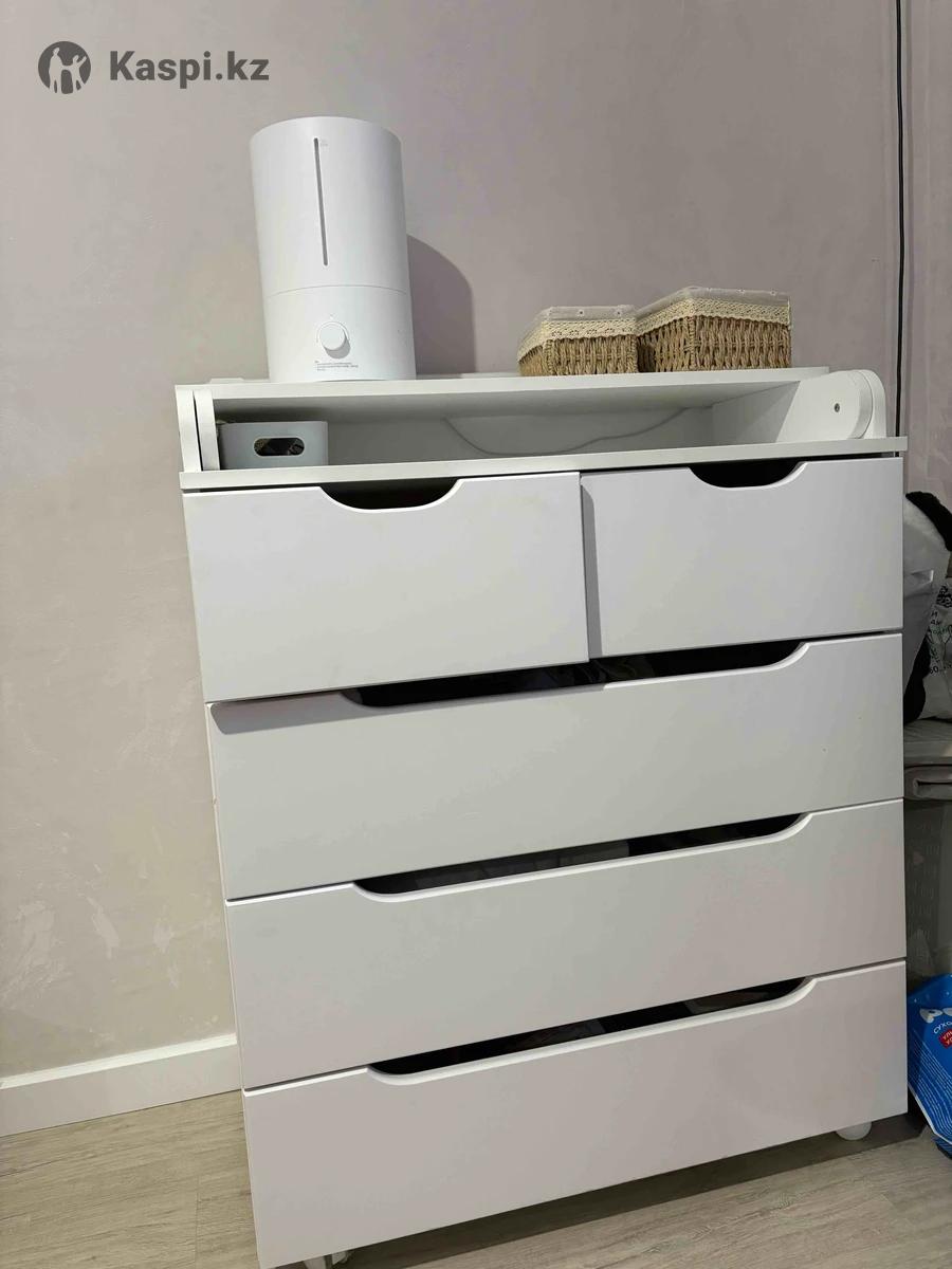 Продам комод в отличном состоянии, на колесиках, колесики фиксируются, есть пеленальная доска которая сворачивается, три отсека для вещей и два маленьких для мелких принадлежностей.