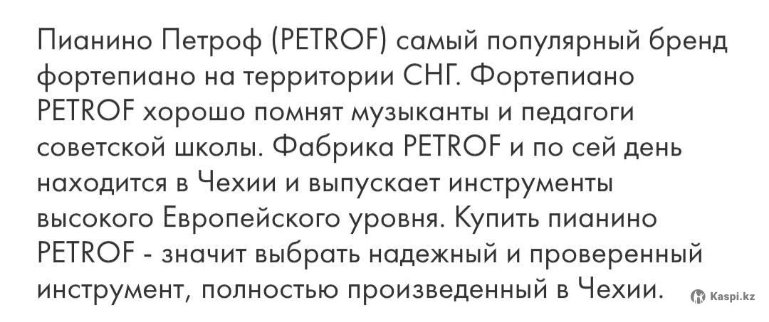 Продам отличный музыкальный инструмент PETROF, инструмент в идеальном состоянии, звучания шикарное, бархатное, крепко держит строй, пианино и внешней и механический на отлично. Инструмент был в одних руках с момента покупки с магазина.