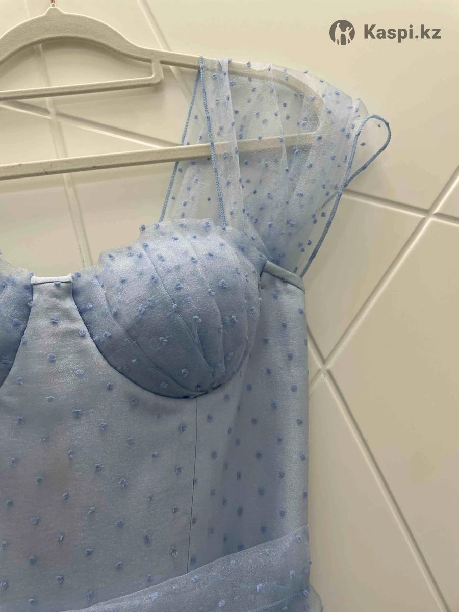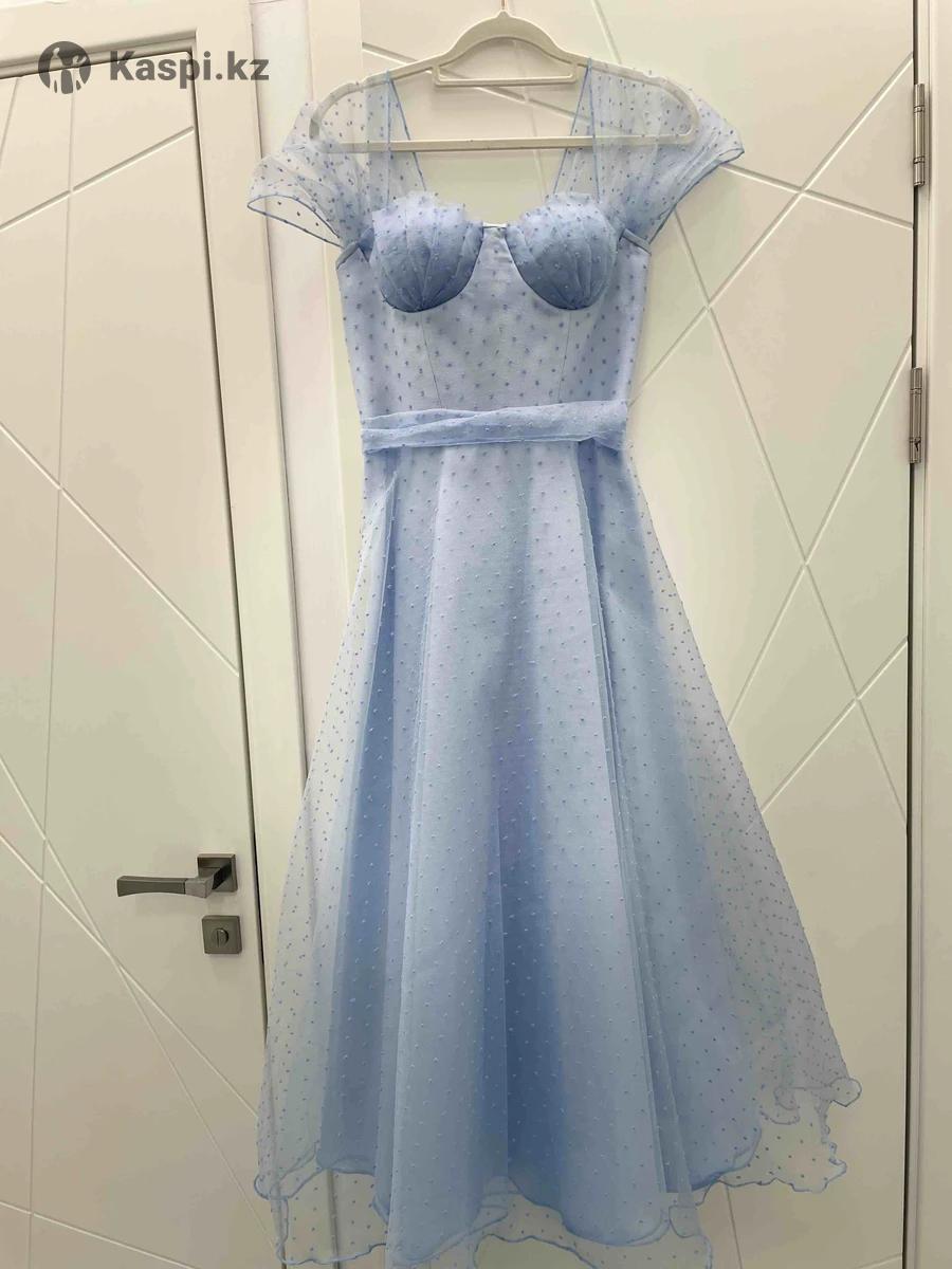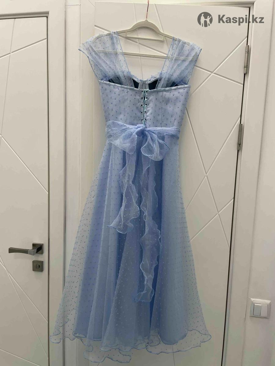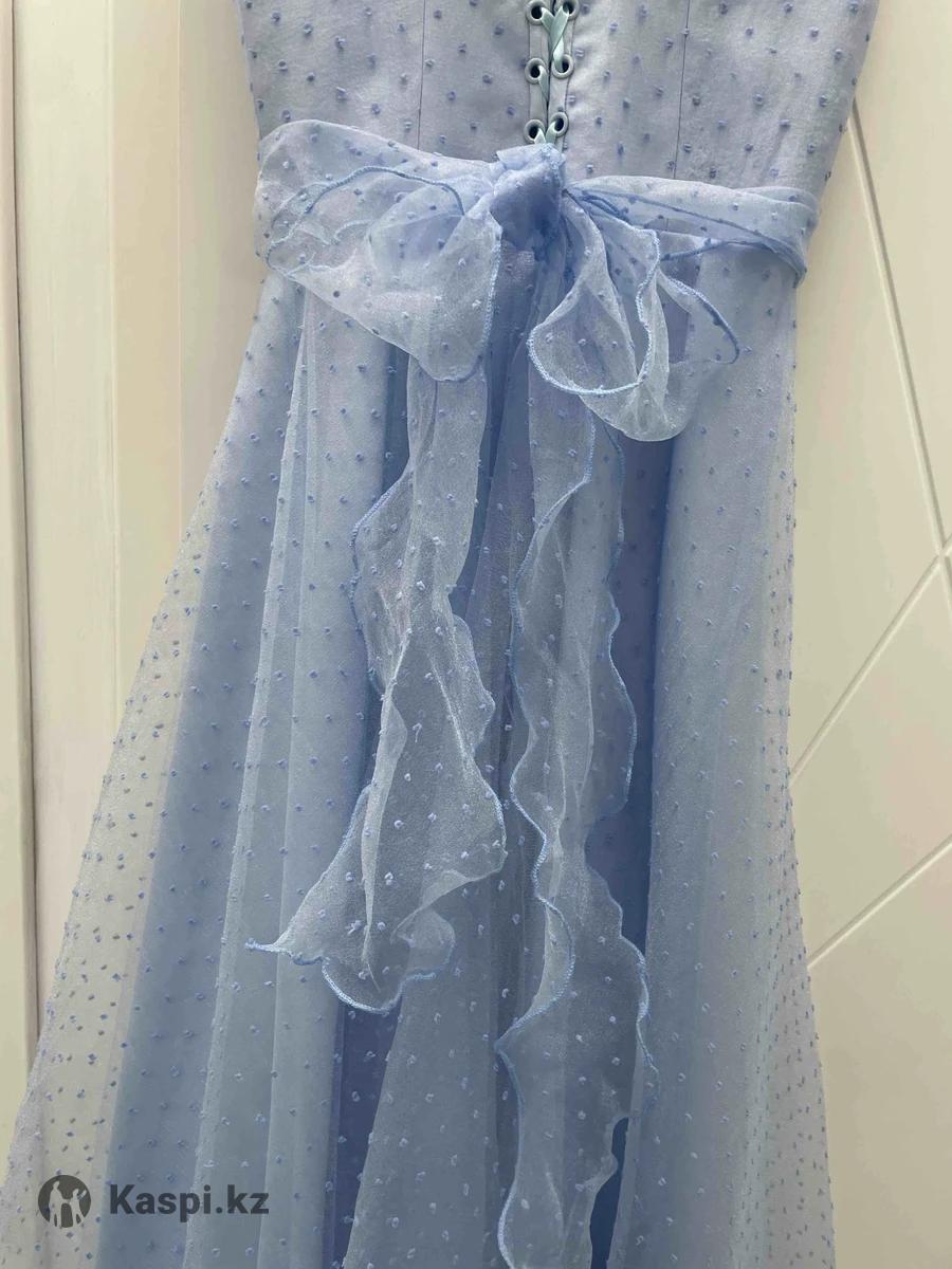 Продаю нарядное, но легкое и удобное голубое платье, которое отлично подойдет как для вечерней прогулки, так и для повседневной носки. Верх — из органзы с нежными крапинками, низ - из натуральной хлопковой ткани (хб), приятной к телу и хорошо дышащей. Платье абсолютно не сковывает движения - в нем легко. Застежка сзади - на завязке, поэтому подойдет на размер от 42 до 46. • Длина юбки - 84 см (чуть ниже колен), по желанию могу укоро-тить . В подарок отдам остатки ткани — из них можно, например, сделать дополнительную пышную нижнюю юбку или интересный аксессуар . Платье шила для дочери с любовью, но ей сейчас не по размеру. Пусть порадует другую девушку Пишите в личку - отвечу