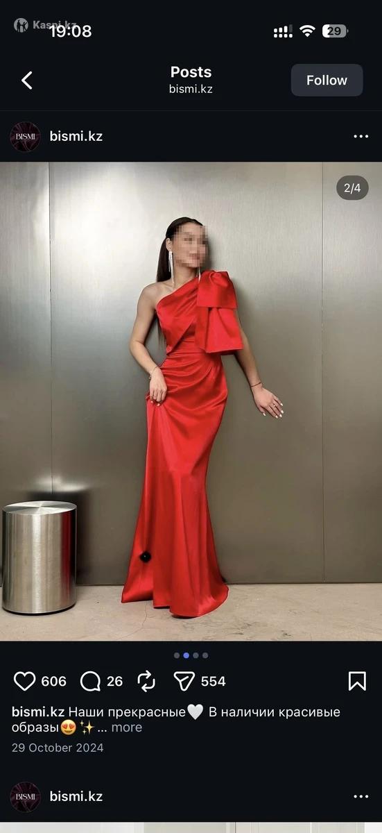 Красное платье на одно плечо, из шелкового материала Размер М