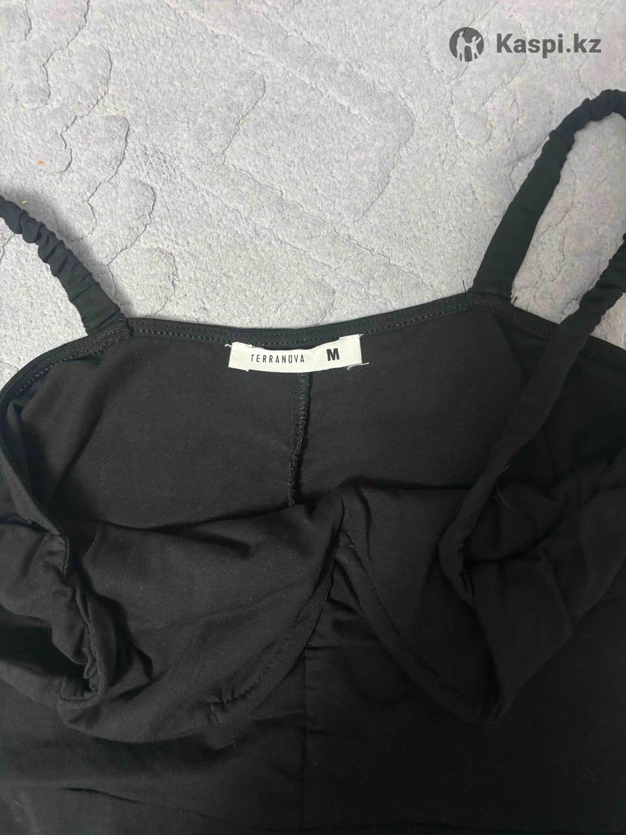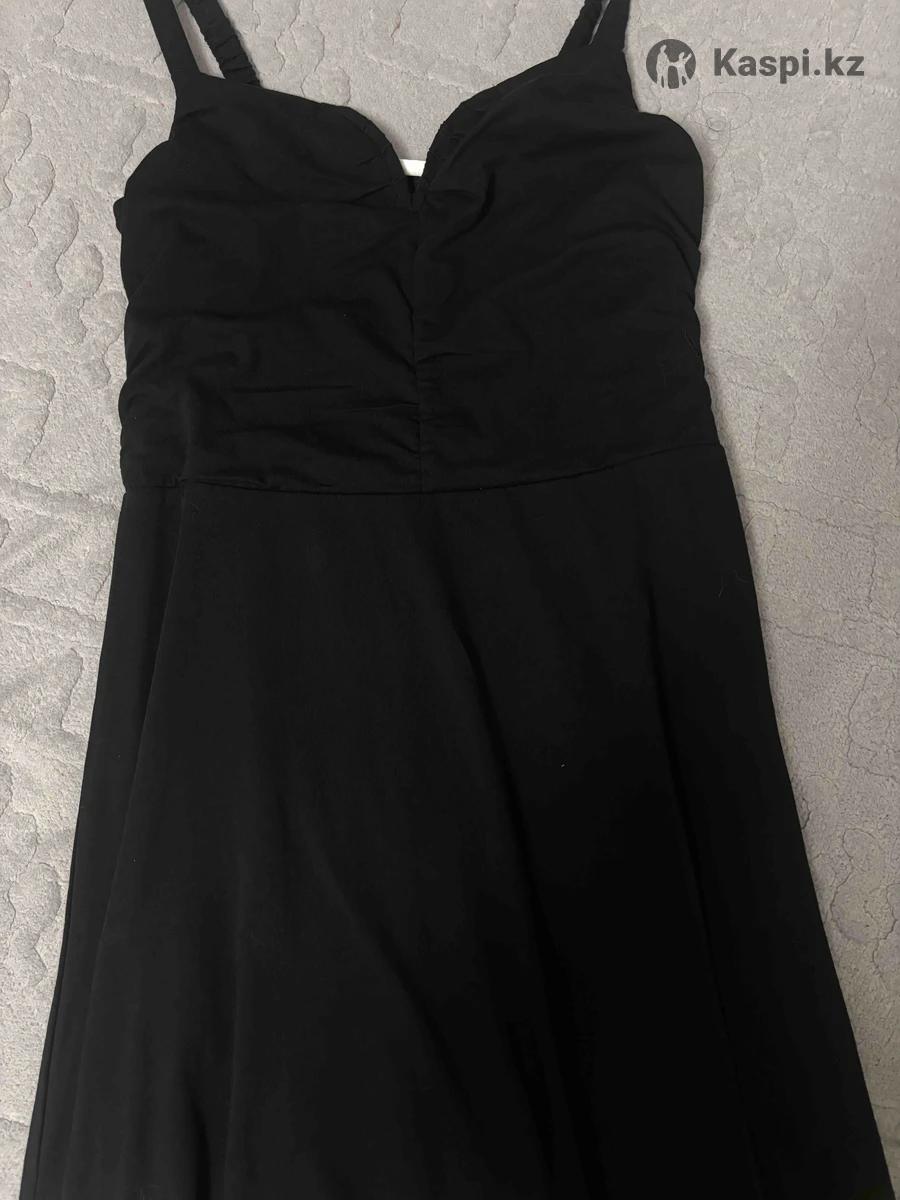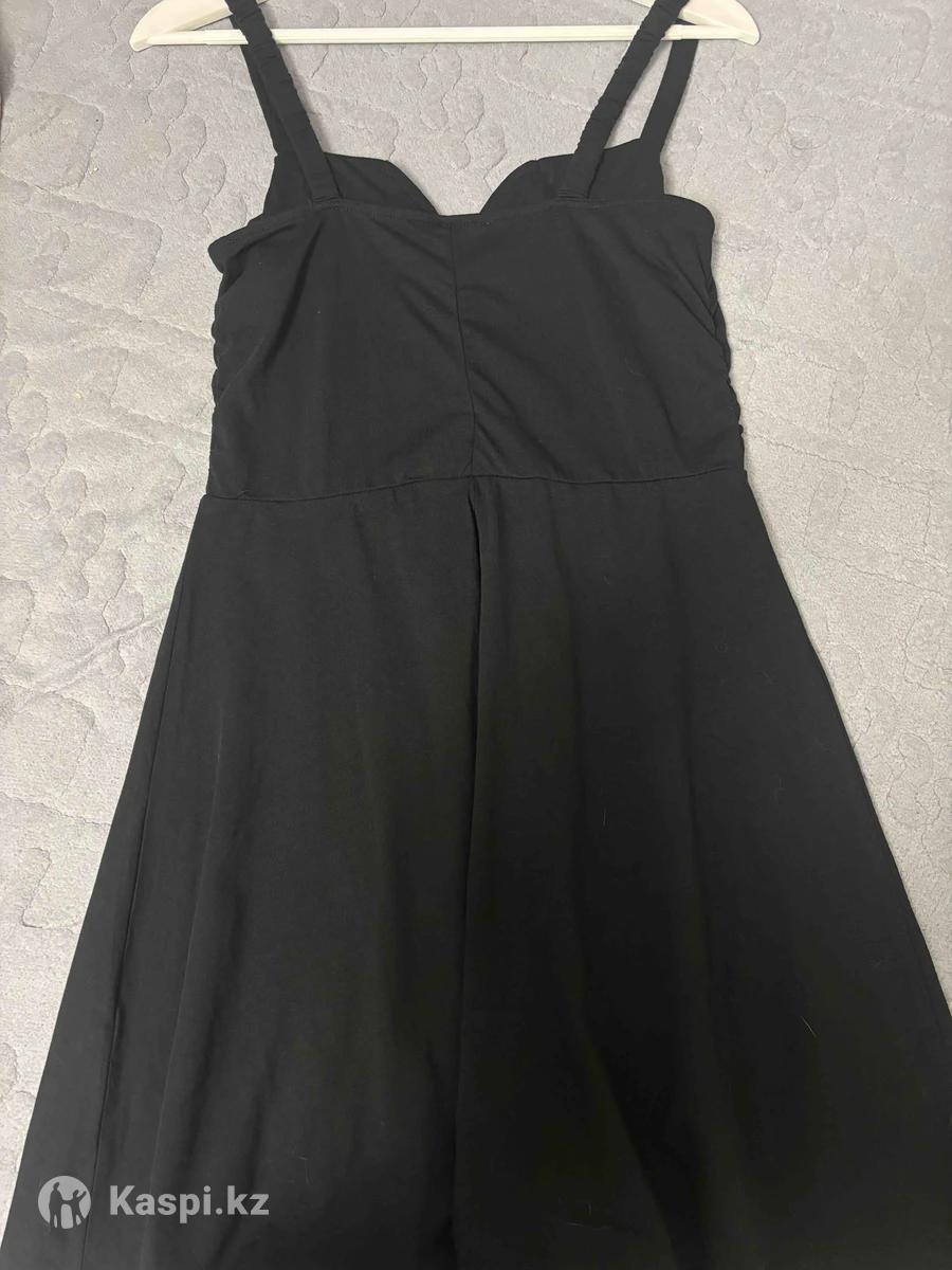 платье черное легкое, имеет неглубокий вырез. Размер М 46-48 ✅ свободное, для роста 160+ будет чуть выше колен, лямки НЕ регулируются но внутри резинка при помощи которой они растягиваются. Платье не ношеное, летнее, можно добавить к нему ремешок. Платье женственное, очень красивое, нет дефектов‼️