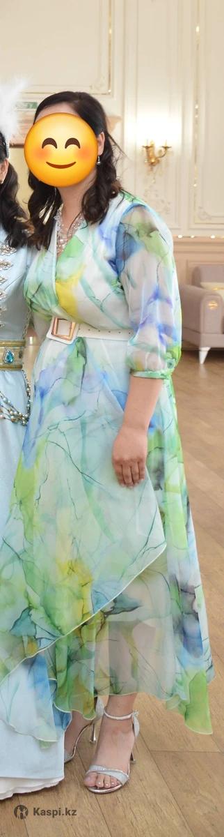 Продам нарядное платье, на той самое то. Носила 1 раз. Покупала за 30тыс тг в идеальном состоянии. Легкое- воздушное. Интересная расцветка. Размер подойдет от 44 до 48.