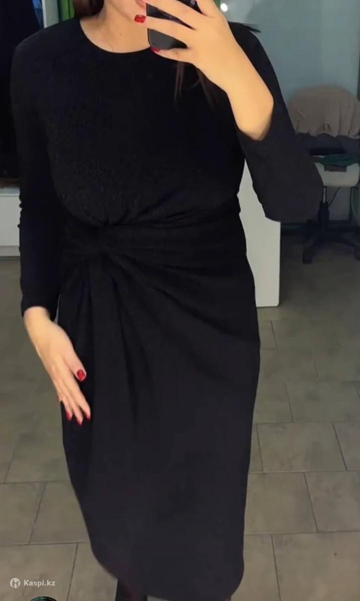 Красивое вечернее платье на 54 размер. Длина ниже колена, обтягивающий силуэт, но иммитация узелка выгодно скрадывает животик. Ткань люрекс песок (черное блестящее платье). Надевала один раз на новый год 👍 Просьба писать, не звонить:)