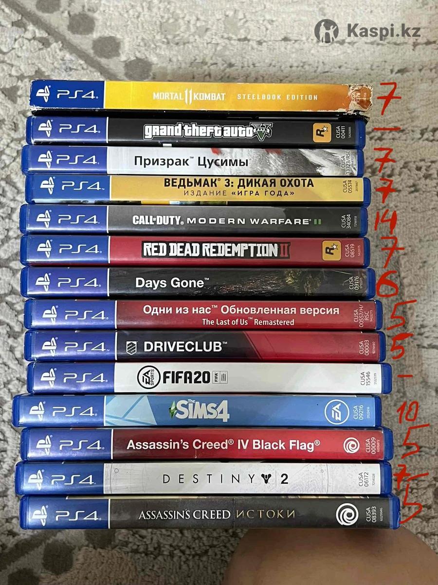 Продам PlayStation 4 кабеля + 2 джойстика + 2 игры цена 75.000 игры видны на фото окончательно обмен на телефон или ПК Так же продаю много игр, можете посмотреть на последнем фото список игр на продажу: mortal kombat 11 призрак цусимы ведьмак 3 дикая охота call of duty modern warface II read dead redemption II days gone the last of us remastered drive club fifa sims 4 assasin creed IV black flag destiny 2 assasin creed истоки