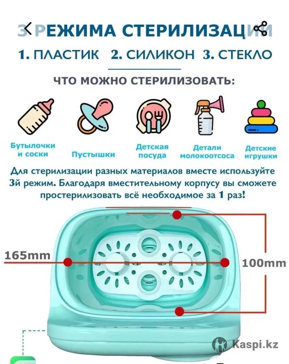 Продам подогреватель - стерилизатор для бутылочек, пустышек, игрушек. В комплекте идут щипцы и подставка для бутылочек. Есть ночной подогрев, что упрощает процесс приготовления смеси. Можно греть пюрешки итд. Для стерилизации воды должно быть не меньше 120 мл.