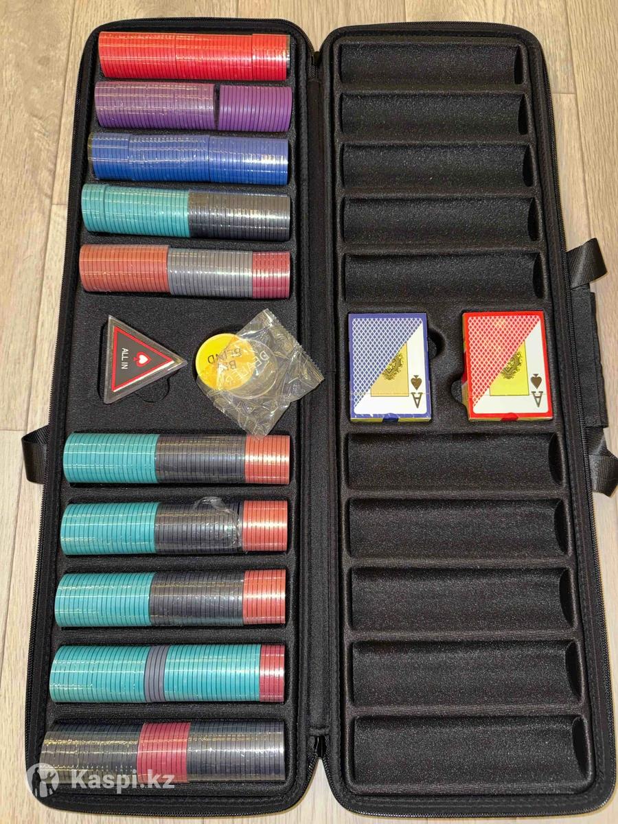 Продам покерный набор Отдаю по себестоимости Абсолютно новый В наборе: 1) Две новые колоды карт 2) Запечатанные фишки 500 шт 3) Доп фишки: Dealer, blind, all-in